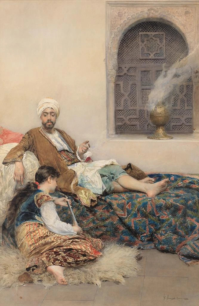 Gustavo Simoni, aktiv gegen Ende des 19. Jahrhunderts und zu Beginn des 20. Jahrhunderts, ist bekannt für seine Fähigkeit, Emotionen durch seine Kunstwerke zu vermitteln. Beeinflusst vom Impressionismus, hat er es verstanden, Elemente des Realismus zu integrieren, um Porträts und Genreszenen mit großer Sensibilität zu schaffen. „La favorite“ spiegelt sein Interesse an der Psychologie der Figuren und dem Ausdruck von Gefühlen wider. Indem er seine Motive in intimen Kontexten platziert, hat Simoni dazu beigetragen, das künstlerische Panorama seiner Zeit zu bereichern und einen bleibenden Eindruck in der Welt der Kunst zu hinterlassen.