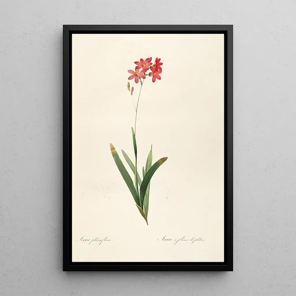 La reproduction des liliacées Pl12 de Pierre Joseph Redouté nous enchante par sa représentation vibrante et réaliste des fleurs. Les teintes éclatantes, allant des jaunes lumineux aux violets profonds, s’entrelacent avec grâce, évoquant la richesse de la biodiversité. La technique de l’aquarelle, utilisée par Redouté, permet de rendre la délicatesse des pétales et la complexité des formes avec une finesse inégalée. Cette œuvre est une véritable ode à la nature, invitant le spectateur à s’émerveiller devant la beauté des liliacées, tout en offrant une atmosphère sereine et contemplative.