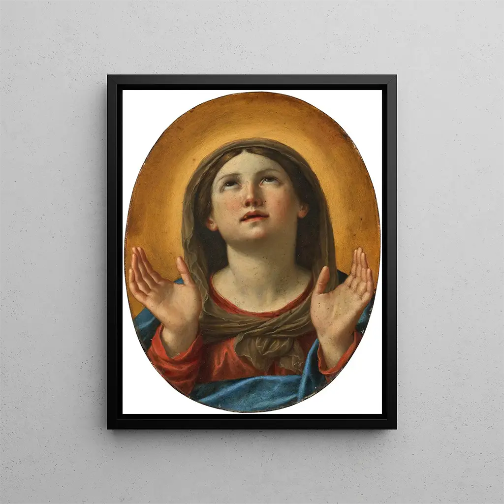 Reproduktion La Madone en prière - Francesco Albani – Einführung fesselnd Im weiten Panorama der Kunstgeschichte heben sich bestimmte Werke durch ihre Fähigkeit hervor, tiefe Emotionen hervorzurufen und Momente der Spiritualität einzufangen. "La Madone en prière" von Francesco Albani ist eines dieser Werke, das Zeit und Raum überwindet und ein Fenster zur Andacht und Anmut bietet. Dieses Werk, das von Gelassenheit geprägt ist, lädt uns ein, die Figur der Jungfrau Maria zu betrachten, die in stillem Gebet versunken ist. Die Zartheit der Züge und die Helligkeit der Farben machen dieses Gemälde zu einem wahren Meisterwerk, das Bewunderung und Nachdenklichkeit weckt. Wenn wir in die Welt Albani eintauchen, entdecken wir nicht nur eine künstlerische Darstellung, sondern auch eine Einladung zur Meditation. Stil und Einzigartigkeit des Werks Der Stil von Francesco Albani ist geprägt von einer Suche nach idealer Schönheit, bei der jedes Detail sorgfältig durchdacht ist, um eine visuelle Harmonie zu schaffen. In "La Madone en prière" zeugen die Sanftheit der Konturen und die Feinheit der Ausdrücke von seinem außergewöhnlichen Talent. Die Komposition ist ausgewogen, mit einer kunstvollen Nutzung des Lichts, das die Jungfrau mit einer fast göttlichen Aura umgibt. Die Drapierungen ihres Gewands, die eine bemerkenswerte Fluidität aufweisen, scheinen die Bewegung der Luft einzufangen, während ihr Blick, zugleich nachdenklich und gelassen, uns in einen Zustand der Andacht versetzt. Dieses Werk zeichnet sich durch seine ruhige Atmosphäre aus, in der jedes Element zu einem Gefühl von Vollkommenheit und Hingabe beiträgt. Albani gelingt es, eine emotionale Verbindung zwischen dem Betrachter und der heiligen Figur herzustellen, wodurch die visuelle Erfahrung tiefgehend immersiv wird. Der Künstler und sein Einfluss Francesco Albani, Maler des 17. Jahrhunderts, wird oft mit der barocken Bewegung in Verbindung gebracht, doch sein Stil zeichnet sich durch einen sanfteren und weniger dramatischen Ansatz aus als der einiger seiner Zeitgenossen. Ausgebildet in der Werkstatt des berühmten Guido Reni, hat Albani eine künstlerische Sprache entwickelt, die klassische Schönheit mit einer eigenen Sensibilität verbindet. Sein Einfluss reicht über seine Epoche hinaus und berührt zahlreiche Künstler, die danach strebten, Licht und Farbe mit gleicher Meisterschaft einzufangen. Durch seine Werke hat er dazu beigetragen, die Vision von Spiritualität in der Kunst zu formen, in