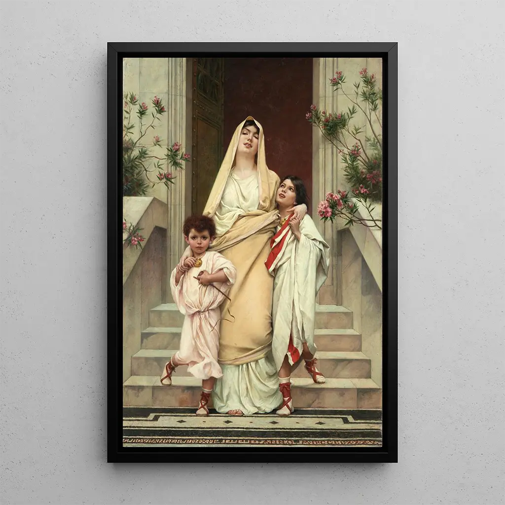 „Die Mutter der Gracchen“ von Gustave Boulanger ist ein berührendes Kunstwerk, das die mütterliche Figur in einem reichen historischen Kontext hervorhebt. Die Komposition, zentriert auf eine Frau mit entschlossenem Blick, ruft Stärke und Widerstandskraft hervor. Die erdigen Farben und die detaillierten historischen Kleidungsstücke tauchen den Betrachter in das antike Rom, während der Ausdruck der Mutter eine spürbare Emotion vermittelt. Dieses Kunstwerk lädt dazu ein, über die Rolle der Frauen in der Geschichte nachzudenken und gleichzeitig ihren stillen, aber mächtigen Einfluss zu feiern.