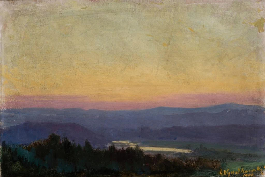 Leon Wyczółkowski, geboren 1852, ist eine der ikonischen Figuren der polnischen Landschaftsmalerei. Beeinflusst vom Impressionismus, hat er die Schönheit der Natur mit einer einzigartigen Sensibilität eingefangen. Seine Karriere, die sich über das späte 19. und frühe 20. Jahrhundert erstreckt, ist geprägt von einer Erforschung der polnischen Landschaften, insbesondere jener seiner Heimatregion. Wyczółkowski war auch ein leidenschaftlicher Verfechter der polnischen Kunst und trug dazu bei, die polnische Malerei auf internationaler Bühne anzuerkennen.