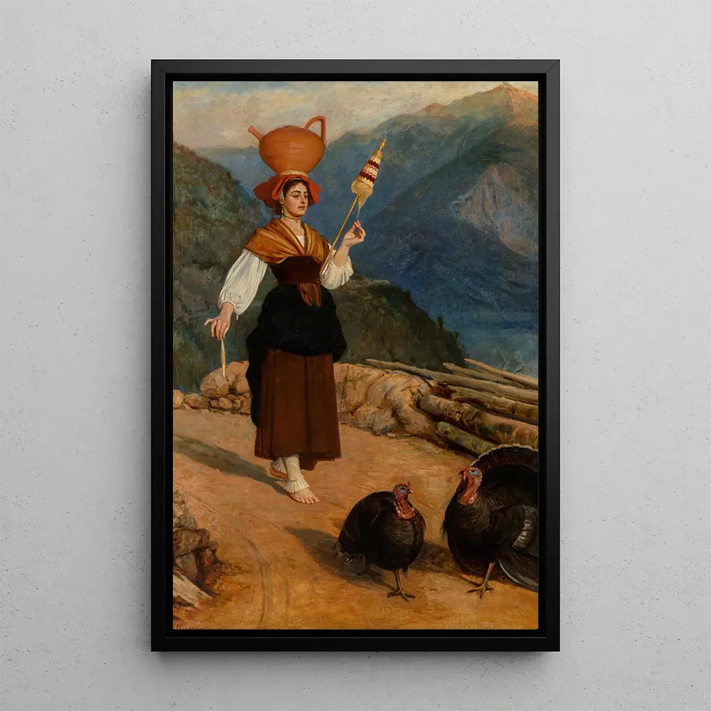Philip Hermogenes Calderon, aktiv im 19. Jahrhundert, wird oft mit der präraffaelitischen Bewegung in Verbindung gebracht, die eine Rückkehr zur Natur und zur Schönheit der Details forderte. Beeinflusst von den Meistern der Renaissance, verstand Calderon, narrative Elemente in seine Werke zu integrieren, wodurch jedes Bild eine eigenständige Geschichte erzählt. 'La Porteuse d'eau' veranschaulicht diese Herangehensweise perfekt, indem es einen Moment des Alltagslebens mit emotionaler Tiefe einfängt. Seine Arbeit hatte einen bedeutenden Einfluss auf die viktorianische Kunst, und er bleibt eine respektierte Figur für seine Fähigkeit, Technik und Sensibilität zu verbinden.