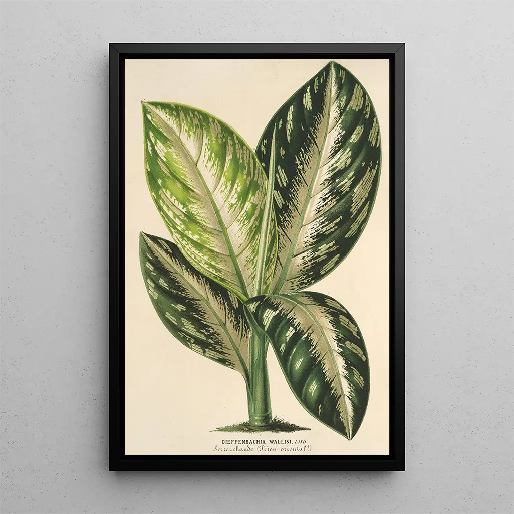 Dieffenbachia Wallisi : ein Tanz aus Grün und Licht Die reproduction von Dieffenbachia Wallisi entführt uns in eine üppige Welt, in der die Blätter, in einem leuchtenden Grün, unter dem Licht zu tanzen scheinen. Die Grüntöne, durchzogen von cremefarbenen Akzenten, erzeugen einen Effekt von Tiefe und Bewegung, als ob jedes Blatt eine Geschichte erzählt. Die Technik des Künstlers, die Realismus und Impressionismus verbindet, erweckt diese tropische Pflanze zum Leben und vermittelt eine Atmosphäre, die sowohl beruhigend als auch dynamisch ist. Dieses Leinwandbild lädt zur Betrachtung und Flucht ein und versetzt den Betrachter in exotische Gefilde. Charles Antoine Lemaire : ein Pionier der künstlerischen Botanik Charles Antoine Lemaire, Botaniker und Künstler des 19. Jahrhunderts, verstand es, Wissenschaft und Kunst in seinen Werken zu vereinen. Beeinflusst von der romantischen Bewegung, widmete er sein Leben dem Studium der Pflanzen, insbesondere der Tropen. Seine Arbeit war wesentlich für die Klassifikation der Pflanzenarten, und seine Illustrationen trugen zur Verbreitung botanischer Kenntnisse seiner Zeit bei. Lemaire, als Künstler, konnte die Schönheit und Komplexität der Natur einfangen und machte seine Werke zu Referenzen sowohl wissenschaftlich als auch ästhetisch. Eine dekorative Anschaffung mit vielfältigen Vorzügen Die reproduction von Dieffenbachia Wallisi ist eine ideale Wahl, um Ihr Interieur zu verschönern, sei es im Wohnzimmer, im Büro oder im Schlafzimmer. Ihre Druckqualität und die Treue zu den Originalfarben machen sie zu einem Blickfang, der die Aufmerksamkeit auf sich zieht und Bewunderung hervorruft. Durch die Integration dieses Bildes in Ihre Dekoration bringen Sie einen Hauch von Grün und Gelassenheit in Ihren Raum. Die ästhetische Anziehungskraft dieses Leinwandbildes, verbunden mit seiner botanischen Geschichte, macht es zu einem eleganten und bereichernden Dekorationselement.