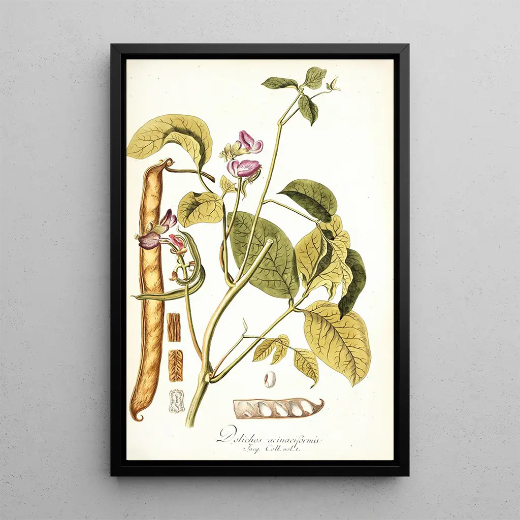 Die reproduction von Dolichos acinaciformis ist eine perfekte dekorative Wahl, um jeden Raum zu verschönern, sei es ein Wohnzimmer, ein Büro oder ein Schlafzimmer. Ihre Druckqualität und die Beachtung der Details machen sie zu einem hochwertigen Stück für Kunst- und Botanikliebhaber. Dieses Bild bringt Frische und Farbe in Ihr Zuhause und fördert gleichzeitig das Interesse an der Natur. Mit ihrer ästhetischen Anziehungskraft ist diese Leinwand viel mehr als nur eine Dekoration; sie ist eine Einladung, die Schönheit der Pflanzenwelt zu schätzen.
