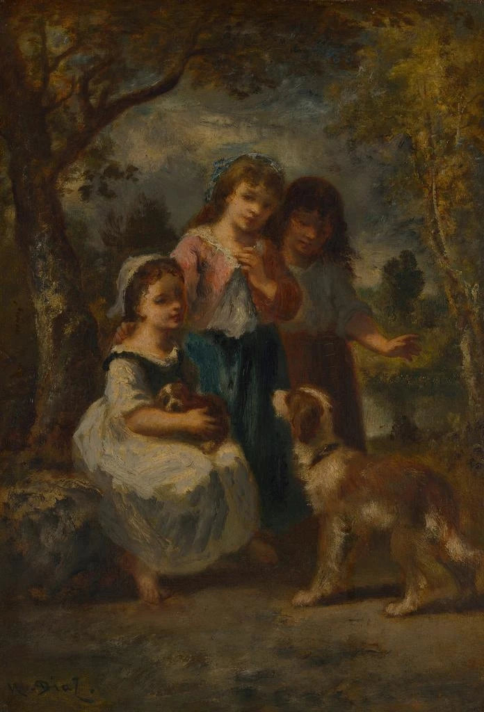 Gemälde Drei kleine Mädchen - Narcisse Virgile Diaz de la Peña | Kunstdruck