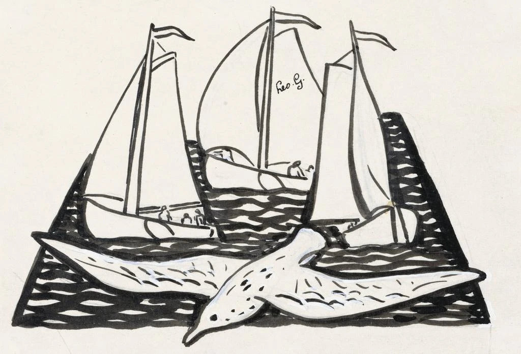 Drei Segelschiffe und eine Möwe - Leo Gestel
