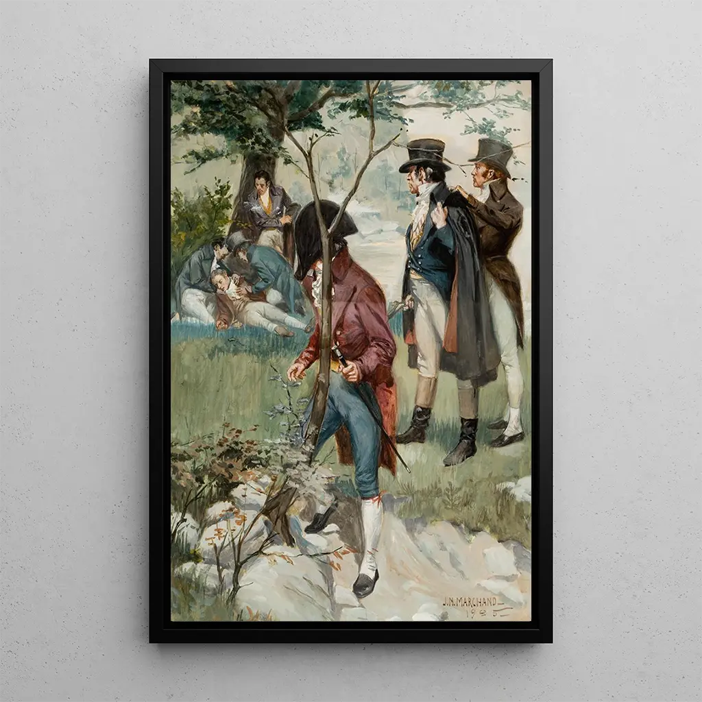 Duelle : eine dramatische Darstellung der Rivalität „Duelle“ von John Norval Marchand ist ein Werk, das die Intensität und Spannung eines Kampfes zwischen zwei Figuren einfängt. Die dynamische Komposition, mit in Bewegung befindlichen Figuren, erinnert an eine Konfliktszene, bei der jedes Detail zählt. Die lebendigen Farben und die auffälligen Kontraste verstärken die dramatische Atmosphäre, während die Ölmaltechnik die Ausdrücke der Protagonisten mit großer Präzision wiedergeben kann. Dieses Gemälde versetzt den Betrachter in einen entscheidenden Moment, in dem Ehre und Tapferkeit auf die Probe gestellt werden, und schafft so ein fesselndes visuelles Erlebnis. John Norval Marchand : ein Künstler der Bewegung und Emotion John Norval Marchand, aktiv zu Beginn des 20. Jahrhunderts, ist bekannt für seine Werke, die die Themen Rivalität und Konflikt erforschen. Sein Stil, beeinflusst von der impressionistischen Bewegung und den Techniken der akademischen Malerei, zeichnet sich durch seine Fähigkeit aus, Bewegung und Emotion einzufangen. „Duelle“ veranschaulicht perfekt sein Talent, Szenen voller Spannung darzustellen, während es gleichzeitig eine Epoche widerspiegelt, in der Duelle als Frage der Ehre angesehen wurden. Marchand hat sich als bedeutender Künstler etabliert, der die Komplexitäten menschlicher Beziehungen durch seine Kunst erforscht. Eine dekorative kunstdruck-aufnahme mit vielfältigen Vorzügen Der kunstdruck von „Duelle“ ist eine mutige dekorative Wahl, die Ihrem Raum eine dynamische Note verleiht. Ob im Büro, Wohnzimmer oder Spielzimmer, dieses Bild zieht sofort die Aufmerksamkeit auf sich und weckt Interesse. Die Qualität der kunstdruck-Reproduktion garantiert eine außergewöhnliche Treue zu den Details des Originalwerks, sodass die Meisterschaft von Marchand voll zur Geltung kommt. Mit seiner fesselnden Ausstrahlung wird dieses Gemälde zu einem zentralen Element Ihrer Dekoration und bereichert Ihre Umgebung mit einer Geschichte von Rivalität und Tapferkeit, die Ihre Besucher zweifellos faszinieren wird.