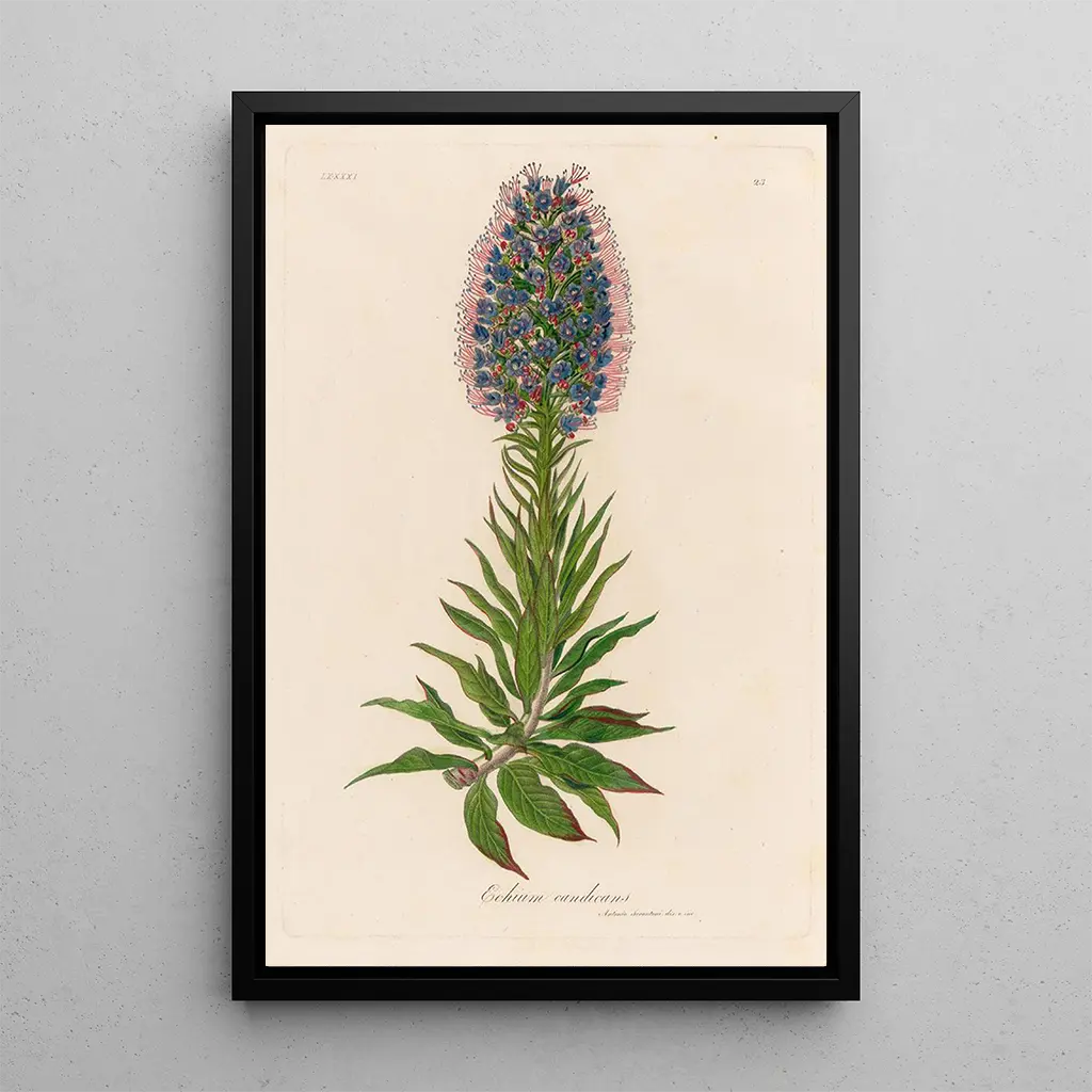 Echium candicans : ein floraler Tanz unter der Sonne L'œuvre "Echium candicans" von Gaetano Savi evoziert eine Explosion lebendiger Farben, bei der sich die Nuancen von Blau und Violett harmonisch verbinden. Dieses Gemälde, das mit einer sorgfältigen Technik gefertigt wurde, fängt die vergängliche Schönheit dieser ikonischen Pflanze der Kanarischen Inseln ein. Die zarten Details der Blumen und Blätter werden mit Präzision wiedergegeben, die den Betrachter in einen üppigen, lichtdurchfluteten Garten entführt. Die Atmosphäre, die von dieser kunstdruck ausgeht, ist sowohl beruhigend als auch inspirierend und lädt zu einer ruhigen Betrachtung der Natur ein. Gaetano Savi : ein Pionier der künstlerischen Botanik Gaetano Savi, Botaniker und Künstler des 18. Jahrhunderts, verstand es, Wissenschaft und Kunst in seinen Werken zu vereinen. Seine Arbeit befindet sich an der Schnittstelle zwischen botanischer Illustration und Malerei und spiegelt die Begeisterung seiner Zeit für die Entdeckung exotischer Pflanzen wider. Beeinflusst von Entdeckungsreisen, trug Savi zur Dokumentation der mediterranen Flora und der umliegenden Inseln bei. Seine Werke, darunter "Echium candicans", zeugen von einer Liebe zum Detail und einer Leidenschaft für die Natur, was ihn zu einer bedeutenden Figur in der Geschichte der botanischen Kunst macht. Eine dekorative Anschaffung mit vielfältigen Vorzügen Der kunstdruck "Echium candicans" ist ein dekoratives Stück, das jeden Raum verschönern kann, sei es ein Wohnzimmer, ein Büro oder ein Schlafzimmer. Seine Druckqualität und die Farbtreue machen ihn zur idealen Wahl für alle, die ihrer Einrichtung einen Hauch Natur verleihen möchten. Die ästhetische Anziehungskraft dieses Gemäldes liegt in seiner Fähigkeit, eine warme und einladende Atmosphäre zu schaffen und gleichzeitig die Bewunderung der Besucher zu wecken. Sich für dieses Werk zu entscheiden, bedeutet eine Dekoration zu wählen, die Eleganz und Gelassenheit vereint.