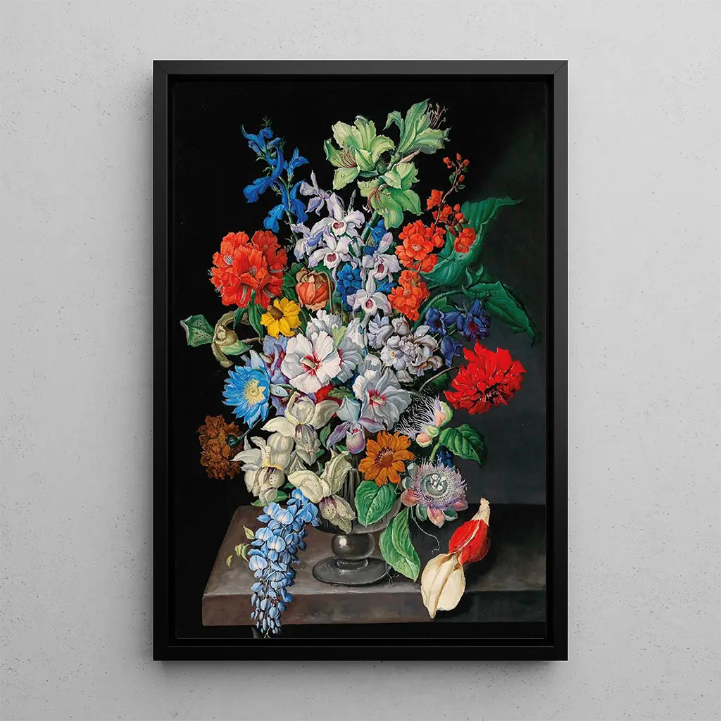 In diesem lebendigen Werk lädt Sebastian Wegmayr uns ein, in eine üppige Blumenwelt einzutauchen. Das Gemälde "Ein großer Blumenstrauß" besticht durch seine leuchtende Palette, in der die lebhaften Töne der Blütenblätter harmonisch miteinander verschmelzen. Die vom Künstler verwendete Ölmaltechnik ermöglicht es, Licht und Textur der Blumen einzufangen und so eine Atmosphäre zu schaffen, die sowohl fröhlich als auch beruhigend ist. Jedes Detail, von zarten Nuancen bis zu subtilen Schatten, trägt dazu bei, diese Komposition zum Leben zu erwecken, wodurch dieser kunstdruck zu einem wahren Tribut an die Schönheit der Natur wird.