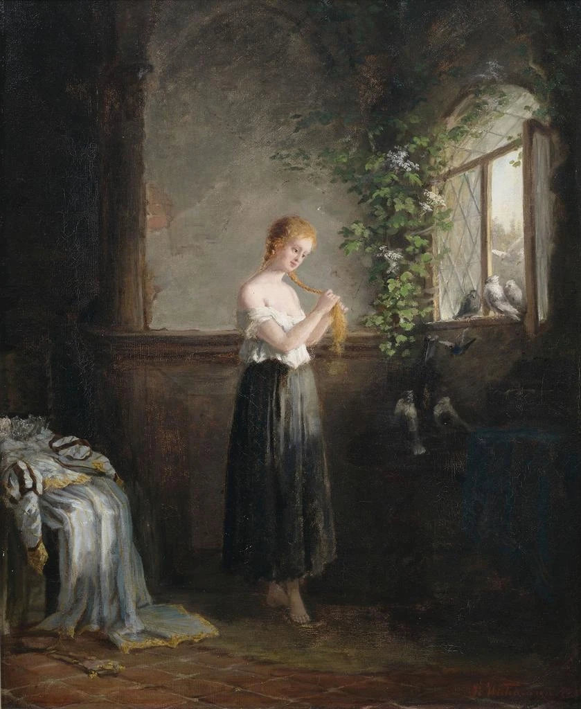 Ein junges Mädchen flechtet ihre Haare - Paul Wichmann