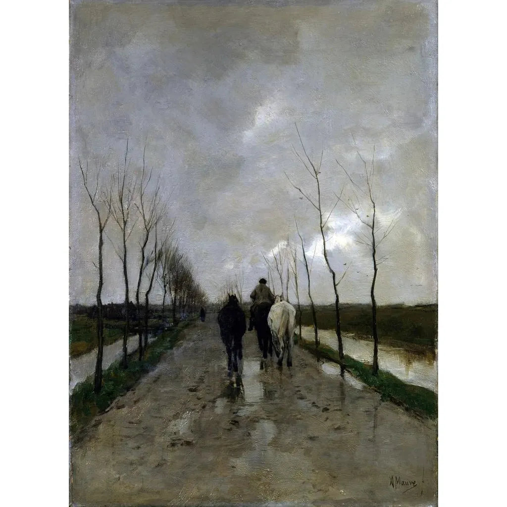 Eine holländische Route: Eine Reise durch die niederländischen Landschaften Eine holländische Route von Anton Mauve ist ein Kunstdruck, der die Gelassenheit der typischen Landschaften der Niederlande hervorruft. Die sanften Farbtöne und das Spiel mit Licht fangen das Wesen eines friedlichen Tages auf dem Land ein. Mauve, mit seiner Meisterschaft in den Nuancen, schafft eine beruhigende Atmosphäre, in der man fast das Flüstern des Windes in den Feldern hören kann. Die Komposition, mit ihren geschwungenen Linien und natürlichen Elementen, lenkt den Blick des Betrachters durch das Gemälde und lädt zu einer visuellen Erkundung der Details ein. Dieses Kunstwerk ist eine wahre Ode an die Schönheit der niederländischen Landschaften. Anton Mauve: ein Meister des realistischen Landschaftsbildes Anton Mauve, eine ikonische Figur der realistischen Bewegung im 19. Jahrhundert, hat das Landleben mit einer einzigartigen Sensibilität eingefangen. Aufgewachsen in einer Künstlerfamilie, wurde er von den großen Meistern seiner Zeit beeinflusst, während er seinen eigenen Stil entwickelte. Mauve ist bekannt für seine Fähigkeit, Licht und Atmosphäre der Landschaften darzustellen, was ihm einen besonderen Platz in der Kunstgeschichte einbrachte. Eine holländische Route veranschaulicht perfekt sein Talent, indem sie eine treue Darstellung der Natur mit einer persönlichen Interpretation verbindet, die den einfachen Realismus übertrifft. Eine dekorative anschaffung mit vielfältigen vorteilen Der Kunstdruck einer holländischen Route von Anton Mauve ist eine perfekte Wahl, um Ihren Wohnraum zu verschönern. Ob im Wohnzimmer, im Büro oder im Schlafzimmer, dieses Kunstwerk bringt eine Note von Ruhe und Charme. Seine Qualität der Reproduktion garantiert eine beeindruckende Treue zu den Details des Originalwerks, während es gleichzeitig eine fesselnde visuelle Anziehungskraft bietet. Durch die Integration dieses Kunstwerks in Ihre Dekoration schaffen Sie eine warme und einladende Atmosphäre und feiern gleichzeitig die Schönheit der niederländischen Landschaften. Dieses Kunstwerk wird somit zu einem dekorativen Element, das inspiriert und beruhigt.