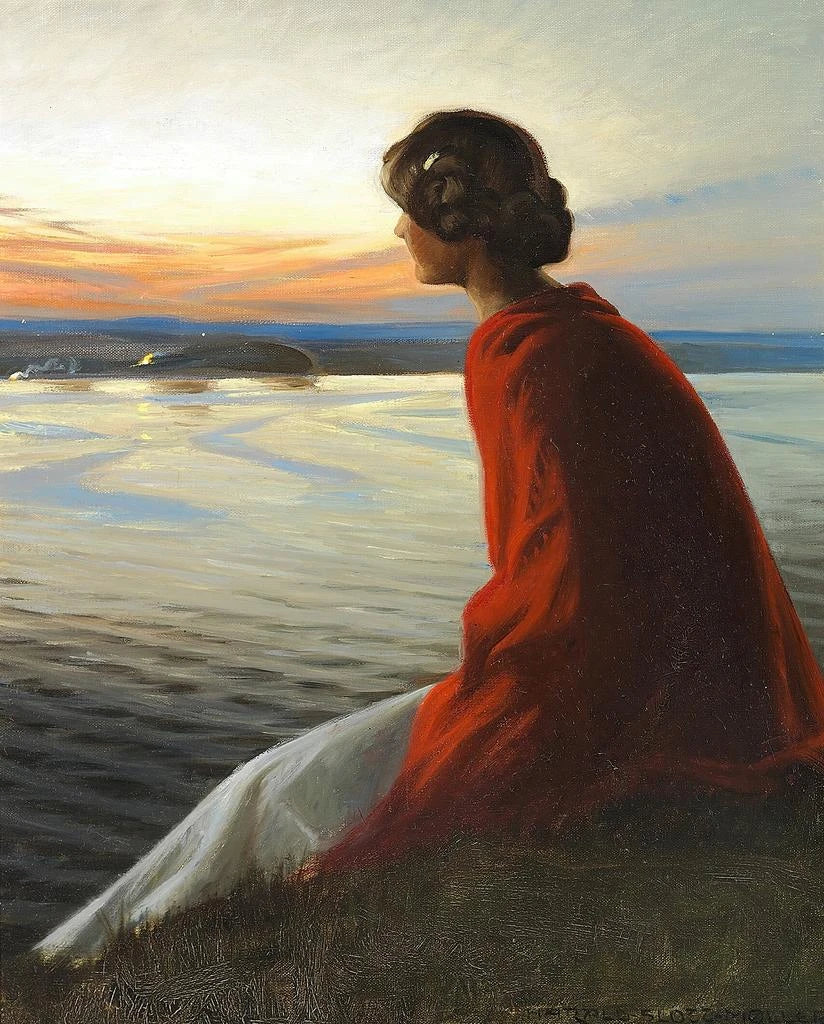 Eine junge Frau schaut auf einen Weizen von St. John's - Harald Slott-Møller