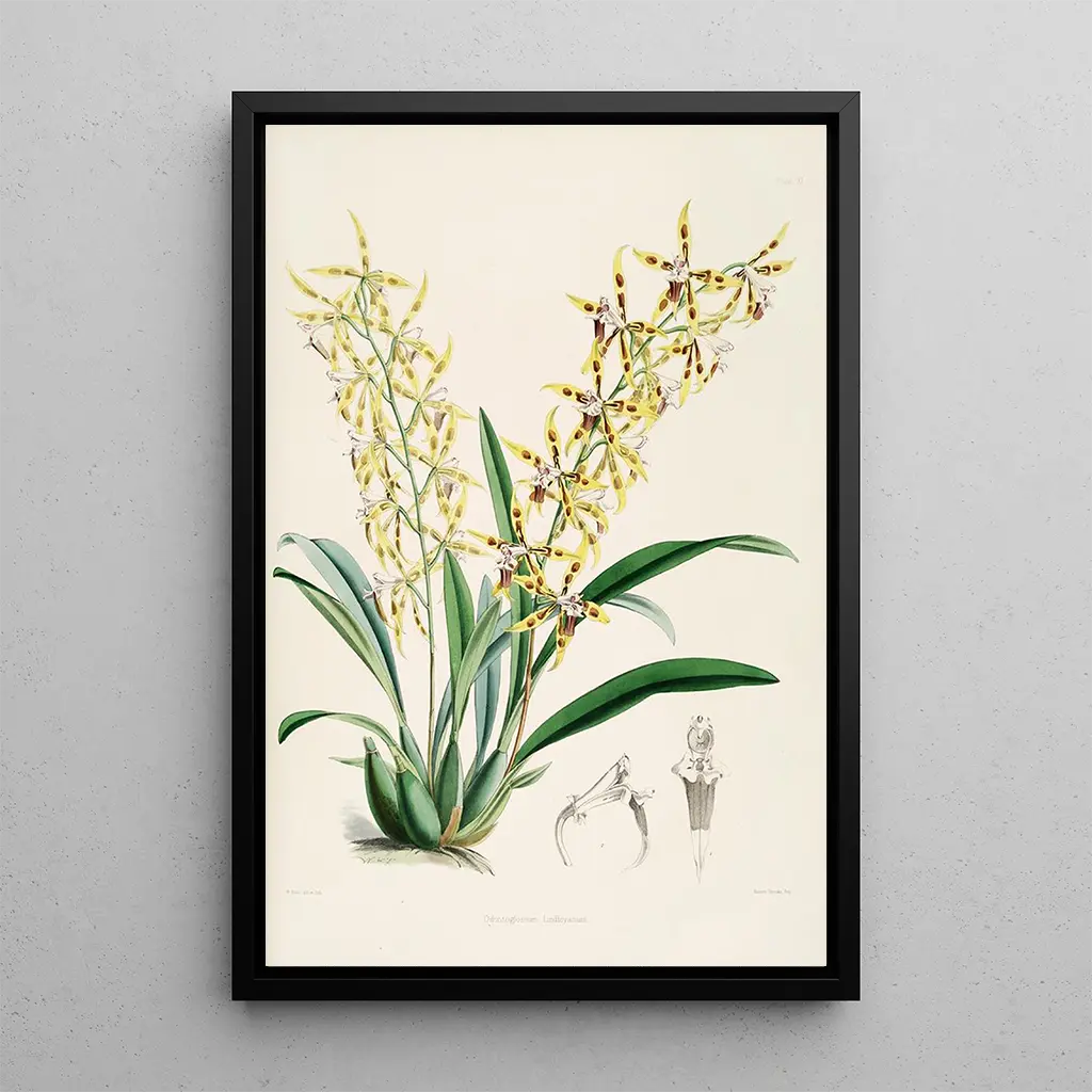 Eine Monographie von Odontoglossum Pl10: eine Ode an die florale Schönheit Das Werk "Odontoglossum Pl10" von James Bateman ist eine wahre Hommage an die Zartheit der Orchideen. Dieser kunstdruck besticht durch seine lebendige Farbpalette, die von leuchtendem Gelb bis zu tiefvioletten Nuancen reicht. Die Aquarelltechnik ermöglicht es, die Transparenz der Blütenblätter und die Detailfülle der botanischen Elemente einzufangen. Die Atmosphäre, die dieses Gemälde ausstrahlt, ist sowohl beruhigend als auch inspirierend und lädt den Betrachter ein, in eine Welt einzutauchen, in der die Natur mit Eleganz und Feinheit zum Ausdruck kommt. James Bateman: Pionier der botanischen Illustration James Bateman, Botaniker und Illustrator des 19. Jahrhunderts, ist bekannt für seine bedeutenden Beiträge zur botanischen Illustration. Beeinflusst von den wissenschaftlichen Entdeckungen seiner Zeit, verstand er es, Präzision und Ästhetik in seinen Werken zu vereinen. Bateman widmete sein Leben der Erforschung der Orchideen, und "Odontoglossum Pl10" zeugt von seinem Engagement für die Schönheit der Natur. Seine Arbeit hat nicht nur das Gebiet der Botanik bereichert, sondern auch das Publikum für die florale Vielfalt sensibilisiert und ihn zu einer unverzichtbaren Figur seiner Zeit gemacht. Eine dekorative Anschaffung mit vielfältigem Nutzen Der kunstdruck "Odontoglossum Pl10" ist ein dekoratives Stück, das sich harmonisch in verschiedene Räume integrieren lässt, sei es im Wohnzimmer, im Büro oder im Schlafzimmer. Seine Druckqualität und die Treue zu den Originalfarben machen ihn zur idealen Wahl für alle, die ihrer Einrichtung einen Hauch Natur verleihen möchten. Mit seinem unbestreitbaren ästhetischen Reiz wird dieses Gemälde zum faszinierenden Blickfang und weckt die Bewunderung aller Besucher. Die Entscheidung für diesen kunstdruck bedeutet, ein Werk zu wählen, das Kunst und Natur vereint und gleichzeitig Ihre Dekoration bereichert.