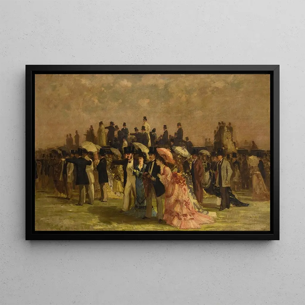 Frauen bei den Pferderennen: ein Tanz aus Mode und Bewegung In diesem lebendigen Werk fängt Louis Abel-Truchet die Aufregung eines Renntages ein, bei dem elegante Frauen mit Anmut unterwegs sind. Die schillernden Farben und die feinen Details der Kleider vermitteln eine Atmosphäre von Luxus und Raffinesse. Die Technik des Künstlers, die Impressionismus und Realismus verbindet, erweckt jede Figur zum Leben, während der unscharfe Hintergrund Bewegung und die Aufregung des Ereignisses andeutet. Die Gesichter der Frauen, obwohl stilisiert, vermitteln eine emotionale Tiefe und laden den Betrachter ein, in diese lebendige Szene einzutauchen. Louis Abel-Truchet: ein Zeuge der Belle Époque Louis Abel-Truchet, aktiv am Ende des 19. Jahrhunderts und zu Beginn des 20. Jahrhunderts, ist ein bedeutender Künstler der Belle Époque. Beeinflusst von den impressionistischen Strömungen, zeichnet er sich durch seine Fähigkeit aus, das Pariser Leben mit Leichtigkeit und Raffinesse einzufangen. Seine Karriere, geprägt von Ausstellungen im Salon, zeugt von der Bedeutung seines Werks in der künstlerischen Landschaft seiner Zeit. Truchet, als aufmerksamer Beobachter der Gesellschaft, verewigt Momente des Alltagslebens und macht seine Gemälde zu Fenstern in eine vergangene Epoche. Eine dekorative kunstdruck-erscheinigung mit vielfältigen Vorzügen Der kunstdruck von Frauen bei den Pferderennen ist ein ideales Dekorationsstück, um Ihr Interieur zu bereichern. Ob im Wohnzimmer, Büro oder Schlafzimmer, dieses Bild verleiht eine Note von Raffinesse und Dynamik. Die Qualität des kunstdrucks garantiert eine detailgetreue Wiedergabe des Originalwerks, sodass Sie seine ästhetische Anziehungskraft im Alltag genießen können. Mit der Wahl dieses Leinwandbildes laden Sie nicht nur Kunst in Ihren Raum ein, sondern auch ein Stück Geschichte und Kultur der Belle Époque, wodurch eine einzigartige und elegante Atmosphäre entsteht.