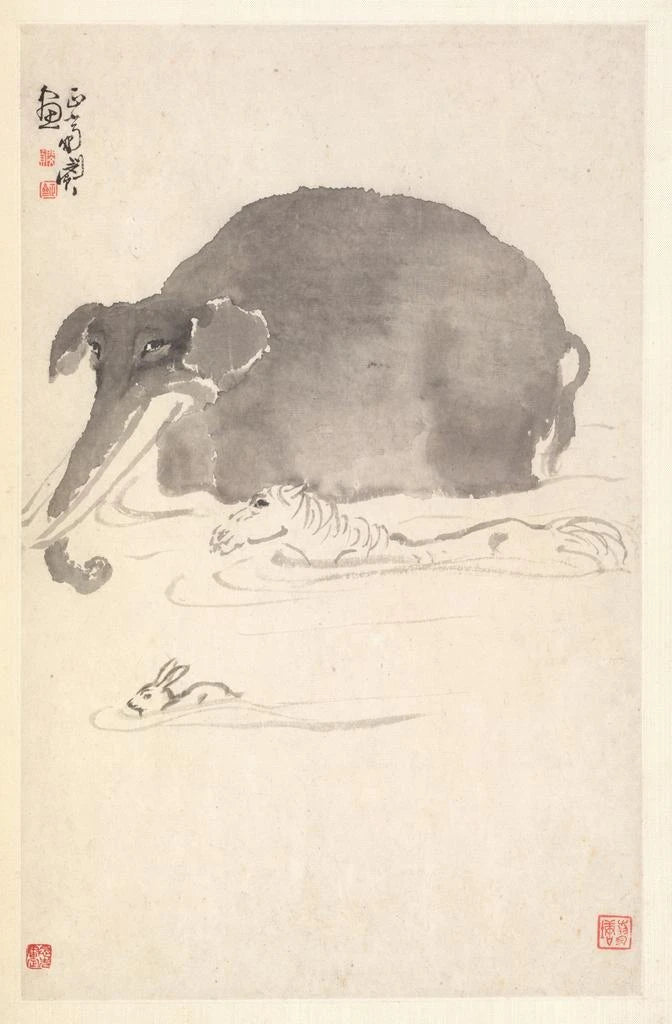 Kunstdruck | Elephant, Pferd und Hase - Min Zhen