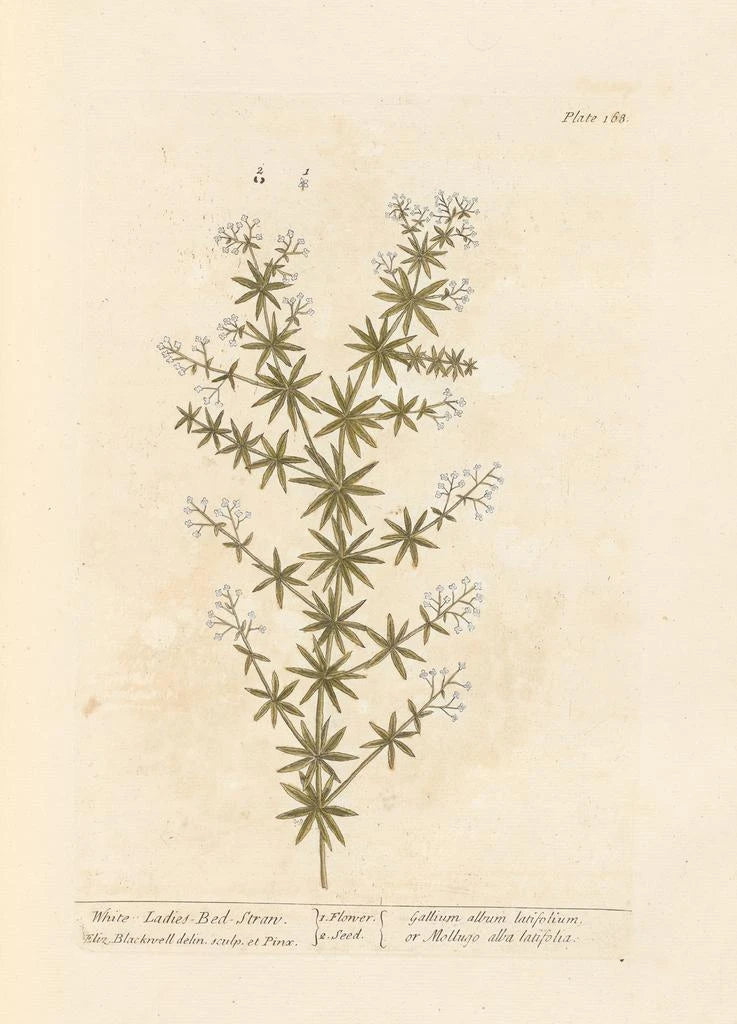 Das Gemälde "Caille-lait blanc" von Elizabeth Blackwell ist eine exquisite Darstellung dieser zarten, oft unbekannten Pflanze. Die Nuancen von Grün und Weiß verschmelzen harmonisch und schaffen eine sanfte, ruhige Atmosphäre. Die Präzision der Details, typisch für den Stil von Elizabeth Blackwell, ermöglicht es, jede Blüte und jedes Blatt mit bemerkenswerter Klarheit zu schätzen. Dieses Werk lädt zu einer aufmerksamen Betrachtung ein und offenbart die subtile Schönheit der Flora und ihre medizinischen Eigenschaften.