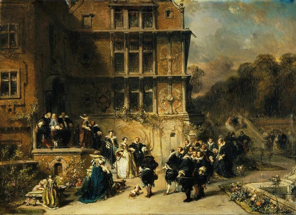 Empfang am Hof in einem Schloss: ein Gemälde voller Pracht und Raffinesse
