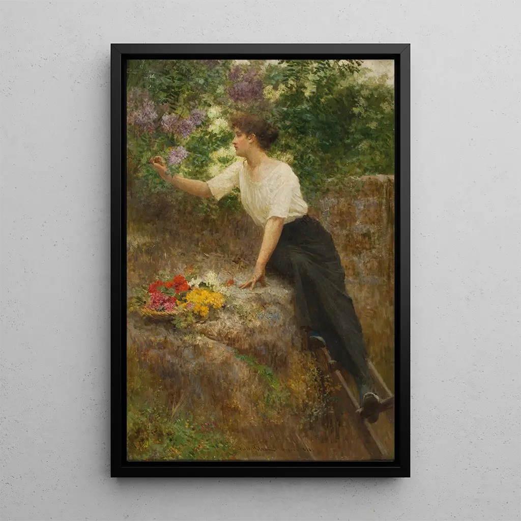 Im Mai: Eine Ode an die Frühlingsschönheit Das Leinwandbild "Im Mai" von Vlaho Bukovac ruft die Sanftheit eines Frühlingstages hervor, an dem das Licht auf Gesichter und Blumen tanzt. Die Pastellfarben, die zarte Grüntöne und Rosa nuancen mischen, schaffen eine beruhigende und fröhliche Atmosphäre. Die Komposition, zentriert um eine junge Frau in einem leichten Kleid, zieht sofort den Blick auf sich. Ihr gelassener und kontemplativer Ausdruck lädt zum Träumen ein, während die umgebende Landschaft, reich an floralen Details, dieses Gefühl der Ruhe verstärkt. Dieses Werk, zugleich intim und lebendig, fängt die Essenz der Frühlingszeit ein. Vlaho Bukovac: Ein Meister des kroatischen Realismus Geboren 1855 in Cavtat, ist Vlaho Bukovac eine ikonische Figur des Realismus in Kroatien. Nach seinem Studium in Paris wurde er von den großen Meistern seiner Zeit beeinflusst, insbesondere von den Impressionisten, was seinen Stil bereicherte. Bukovac verstand es, Elemente der akademischen Malerei mit moderner Sensibilität zu verbinden, und wurde so zu einem Pionier in seinem Land. Seine Werke, oft geprägt von Licht und Farbe, zeugen von einem tiefen Verständnis der menschlichen Natur und der Schönheit der Welt um uns herum. "Im Mai" passt perfekt in diese Linie und zeigt sein Talent, flüchtige Momente des Lebens einzufangen. Eine dekorative Anschaffung mit vielfältigen Vorzügen Der kunstdruck von "Im Mai" ist ein dekoratives Stück, das jeden Raum verschönern kann, sei es ein Wohnzimmer, ein Büro oder ein Schlafzimmer. Seine sanfte Farbpalette und florale Motive bringen Frische und Gelassenheit in Ihr Zuhause. Die Qualität des kunstdrucks garantiert eine bemerkenswerte Treue zum Original, sodass Sie das Werk von Bukovac bequem in Ihrem Zuhause genießen können. Mit seinem unbestreitbaren ästhetischen Reiz wird dieses Bild "Im Mai" zu einem wahren Blickfang, der Bewunderung und Kontemplation bei Ihren Gästen hervorruft.