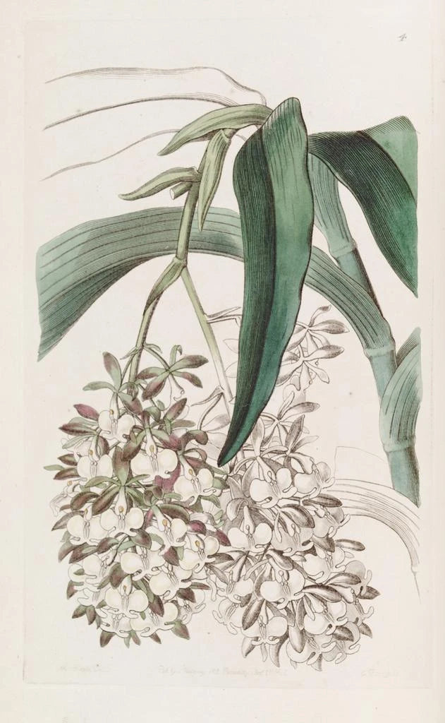 Sydenham Edwards, aktiv im frühen 19. Jahrhundert, gilt als einer der einflussreichsten botanischen Künstler seiner Zeit. In England ausgebildet, wurde er stark von den wissenschaftlichen Entdeckungen seiner Epoche und der romantischen Bewegung inspiriert, die die Natur wertschätzte. Edwards trug zu zahlreichen Veröffentlichungen über Pflanzen bei, wobei er wissenschaftliche Strenge mit ästhetischem Anspruch verband. Seine Arbeit bereicherte nicht nur das Wissen über Pflanzenarten, sondern setzte auch einen hohen Standard für die botanische Illustration. "Epidendrum à deux pieds" zeugt von seinem Engagement für eine treue Darstellung der Pflanzen, verbunden mit einer einzigartigen künstlerischen Note.