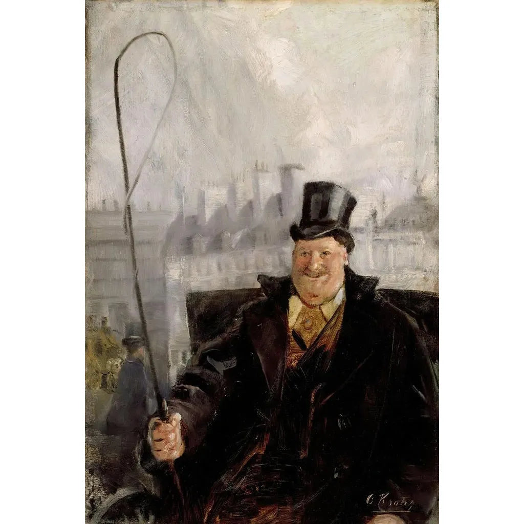 Christian Krohg, norwegischer Maler der realistischen Bewegung, hat sich als bedeutende Figur der skandinavischen Kunst etabliert. Beeinflusst von den großen europäischen Meistern, entwickelte er einen einzigartigen Stil, der sorgfältige Beobachtung und emotionale Sensibilität verbindet. Aktiv Ende des 19. Jahrhunderts, hat Krohg häufig soziale Themen erforscht und die Realitäten des Alltagslebens hervorgehoben. Sein Engagement für die authentische Darstellung der Gesellschaft hat ihm eine nachhaltige Anerkennung eingebracht. "Coché parisien" ist Teil dieser Tradition und zeugt von seinem Talent, flüchtige Momente des modernen Lebens zu verewigen.