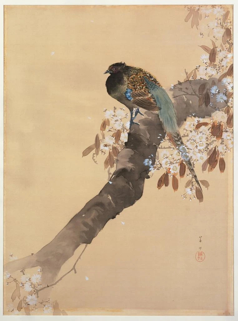 Fasan auf einem Kirschblütenzweig - Ohara Koson