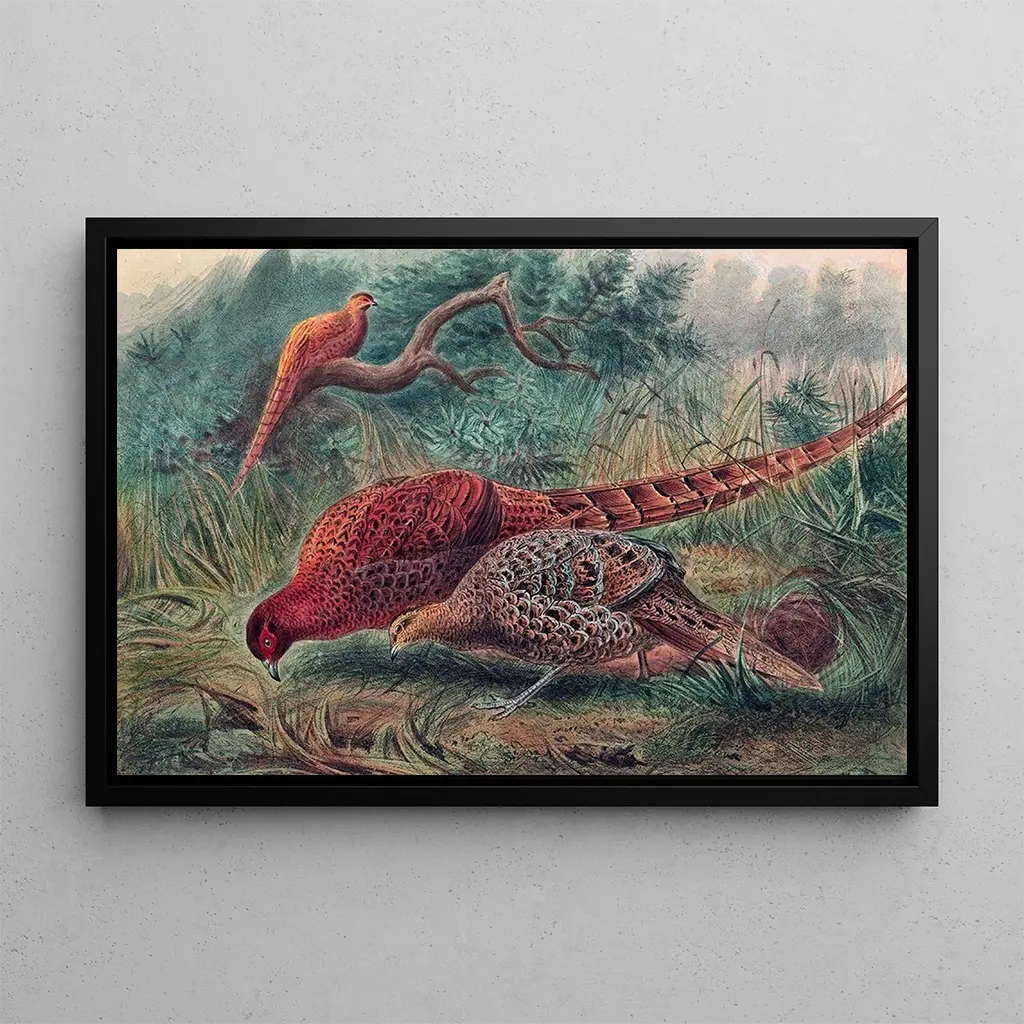 Faisan de Soemmerring : eine Feier der wilden Natur Das "Faisan de Soemmerring" von Joseph Wolf ist ein lebendiges Kunstwerk, das die Pracht der Tierwelt einfängt. Die Komposition hebt einen majestätischen Fasan hervor, dessen schillernde Federn im Licht funkeln und eine Palette reicher Farben von Gold bis Smaragdgrün offenbaren. Die mit Wasserfarben meisterhaft ausgeführte Technik verleiht dem Gesamtwerk Leichtigkeit, während der verschwommene Hintergrund eine natürliche, fast traumhafte Umgebung evoziert. Die Atmosphäre, die diese kunstdruck ausstrahlt, lädt zu einer ruhigen Betrachtung ein, bei der der Betrachter fast das Zwitschern der Vögel hören und die leichte Brise spüren kann. Joseph Wolf : ein Meister der Tierwelt des 19. Jahrhunderts Joseph Wolf, geboren 1820, gilt als einer der bedeutendsten Tierillustratoren seiner Zeit. Ursprünglich aus Deutschland stammend, wurde er stark von den Entdeckungsreisen und wissenschaftlichen Erkenntnissen seiner Epoche beeinflusst. Seine Karriere war geprägt von akribischer Detailgenauigkeit und einer Leidenschaft für die realistische Darstellung von Tieren. Wolf arbeitete mit Naturforschern und Wissenschaftlern zusammen, was sein Verständnis der Arten, die er malte, vertiefte. Sein Werk, zu dem auch "Faisan de Soemmerring" gehört, ist ein emblematisches Beispiel und zeugt von der Bedeutung der Natur in der Kunst des 19. Jahrhunderts, einer Zeit, in der die Biodiversität noch weitgehend unbekannt war. Eine dekorative anschaffung mit vielfältigen vorteilen Der kunstdruck des "Faisan de Soemmerring" ist ein ideales Dekorationsstück für verschiedene Wohnräume, sei es im Wohnzimmer, im Büro oder im Schlafzimmer. Seine Druckqualität und die Treue zum Originalwerk garantieren eine beeindruckende ästhetische Wirkung, die die Atmosphäre jedes Raumes aufwertet. Dieses Bild zieht den Blick auf sich und regt Gespräche an, während es eine Note von Natur und Ruhe in Ihr Zuhause bringt. Mit der Wahl dieses Leinwandbildes entscheiden Sie sich für ein Werk, das Schönheit, Geschichte und tiefen Respekt für die Tierwelt vereint und Ihren Raum zu einem Ort der Flucht und Inspiration macht.