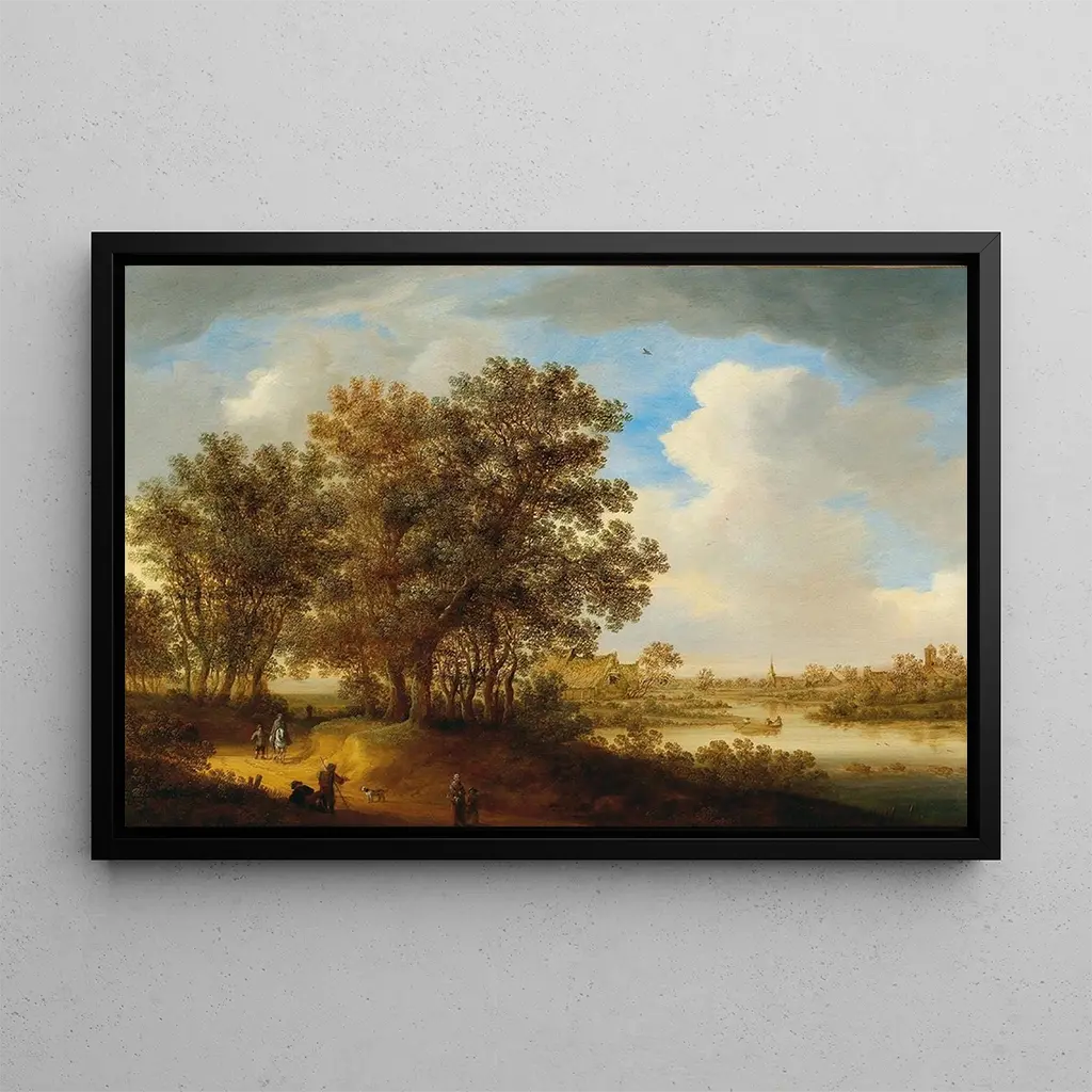 Flusslandschaft: eine Harmonie zwischen Himmel und Wasser Das Gemälde 'Flusslandschaft' von Johan Pietersz Schoeff vermittelt eine beruhigende Gelassenheit, bei der die Spiegelungen der Wolken im Wasser einen Dialog zwischen Himmel und Erde schaffen. Die Komposition ist sorgfältig ausbalanciert, mit natürlichen Elementen, die sich in einer idyllischen Landschaft vereinen. Die sanften Farben, die von Pastellblau bis zu zarten Grüntönen reichen, schaffen eine Atmosphäre der Ruhe. Die Technik des Künstlers, der fließende Pinselstriche verwendet, verstärkt diesen Eindruck von Bewegung und Lebendigkeit und lädt den Betrachter ein, in diese bucolische Szene einzutauchen. Johan Pietersz Schoeff: ein Meister der niederländischen Landschaftsmalerei Johan Pietersz Schoeff, aktiv im 17. Jahrhundert, ist ein bedeutender Vertreter der niederländischen Landschaftsmalerei. Beeinflusst von den Meistern seiner Zeit, entwickelte er einen eigenen Stil, der durch eine sorgfältige Detailarbeit und eine geschickte Lichtführung gekennzeichnet ist. Schoeff wurde häufig mit Themen der Natur und der Ruhe assoziiert, was das pastorale Ideal seiner Epoche widerspiegelt. Sein Werk fällt in eine Zeit, in der die Landschaft zu einem eigenständigen Genre wurde und die künstlerische Sensibilität sich zu einer tieferen Wertschätzung natürlicher Umgebungen entwickelte. Eine dekorative kunstdruck mit vielfältigen Vorzügen Der kunstdruck des 'Flusslandschaft' ist ein dekoratives Stück, das jeden Raum verschönern kann, sei es ein Wohnzimmer, ein Büro oder ein Schlafzimmer. Die Qualität des kunstdrucks garantiert eine beeindruckende Treue zum Originalwerk, sodass man die Schönheit dieses Gemäldes im Alltag genießen kann. Mit seinem unbestreitbaren ästhetischen Reiz lädt dieses Werk zur Betrachtung und Träumerei ein und bringt einen Hauch von Natur und Ruhe in Ihren Lebensraum. Gönnen Sie sich einen Moment der Flucht mit diesem kunstdruck, der Charme und Eleganz vereint.