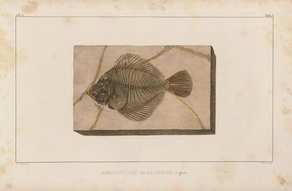 Louis Agassiz, bedeutender Naturforscher des 19. Jahrhunderts, gilt als einer der Begründer der modernen Paläontologie. Seine Leidenschaft für die Erforschung der Fossilien führte ihn dazu, Illustrationen zu erstellen, die zu Referenzen in diesem Fachgebiet wurden. Beeinflusst von den geologischen Entdeckungen seiner Zeit, verstand er es, wissenschaftliche Strenge mit künstlerischem Gespür zu verbinden. Recherches sur les poissons fossiles Pl027 ist ein perfektes Beispiel für seine Arbeit und zeugt von seinem Engagement, die vergangene Biodiversität zu dokumentieren und die Öffentlichkeit für den Schutz der Arten zu sensibilisieren.
