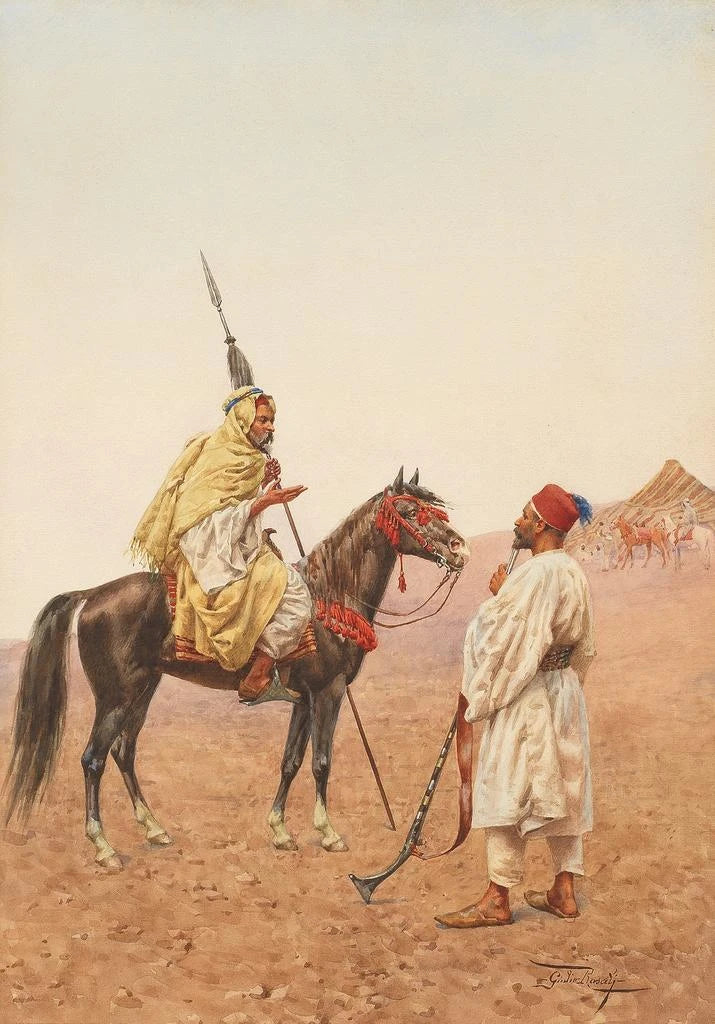 Giulio Rosati, italienischer Maler des 19. Jahrhunderts, ist bekannt für seine Werke, die die Essenz des Orientalismus einfangen. Beeinflusst von seinen Reisen nach Nordafrika und im Nahen Osten, konnte er die Schönheit und Exotik dieser Regionen in seiner Kunst widerspiegeln. Rosati entwickelte sich in einer Zeit, in der der Orientalismus auf seinem Höhepunkt war, und seine Gemälde spiegeln eine Faszination für orientalische Kulturen wider, die oft von europäischen Künstlern idealisiert wurden. Seine Arbeit, reich an Details und Farben, hat dazu beigetragen, die westliche Wahrnehmung dieser fernen Länder zu formen, was ihn zu einem Schlüsselakteur dieser künstlerischen Bewegung macht.