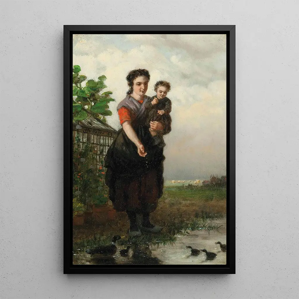 Nourrir die Enten: Ein Moment der Gelassenheit am Wasser In diesem fesselnden Werk taucht Henri van Seben in eine ruhige Szene ein, in der die Zeit stillzustehen scheint. Die zarte Komposition hebt eine Gruppe von Enten hervor, die sich an Brotresten delektieren, während ein Kind mit strahlendem Lächeln sie aufmerksam beobachtet. Die sanften und natürlichen Farben, die von beruhigenden Grüntönen bis zu warmen Brauntönen reichen, schaffen eine Atmosphäre der Ruhe. Die Technik des Künstlers, die Realismus und Impressionismus verbindet, lädt uns ein, die einfache Freude am Füttern dieser Tiere zu spüren und gleichzeitig die Schönheit der umliegenden Natur zu feiern. Henri van Seben: Ein Künstler im Herzen der Natur Henri van Seben, aktiv gegen Ende des 19. Jahrhunderts und zu Beginn des 20. Jahrhunderts, ist bekannt für seine Darstellungen des Alltagslebens und der Natur. Beeinflusst von den großen Meistern des Impressionismus, entwickelt er einen einzigartigen Stil, der Licht und lebendige Farben in den Vordergrund stellt. Seine Werke, oft von Nostalgie geprägt, zeugen von einer Epoche, in der die Beziehung zwischen Mensch und Natur essenziell war. Van Seben hat flüchtige Momente mit besonderer Sensibilität eingefangen, was ihn zu einem bedeutenden Künstler seiner Zeit macht, dessen Erbe durch seine Gemälde weiterlebt. Eine dekorative Anschaffung mit vielfältigen Vorzügen Der kunstdruck von "Nourrir les canards" ist ein ideales Dekorationsstück für verschiedene Räume wie Wohnzimmer, Büro oder Schlafzimmer. Seine ruhige und fröhliche Atmosphäre bringt einen Hauch Natur in Ihr Zuhause und fördert eine entspannende Stimmung. Die Qualität des kunstdrucks garantiert eine Treue zu den Farben und Details des Originalwerks, sodass Sie das Talent von Henri van Seben voll und ganz genießen können. Mit seinem unbestreitbaren ästhetischen Reiz wird dieses Bild zu einem echten Blickfang, der Bewunderung und Gespräche über die schlichte Schönheit des Lebens anregt.
