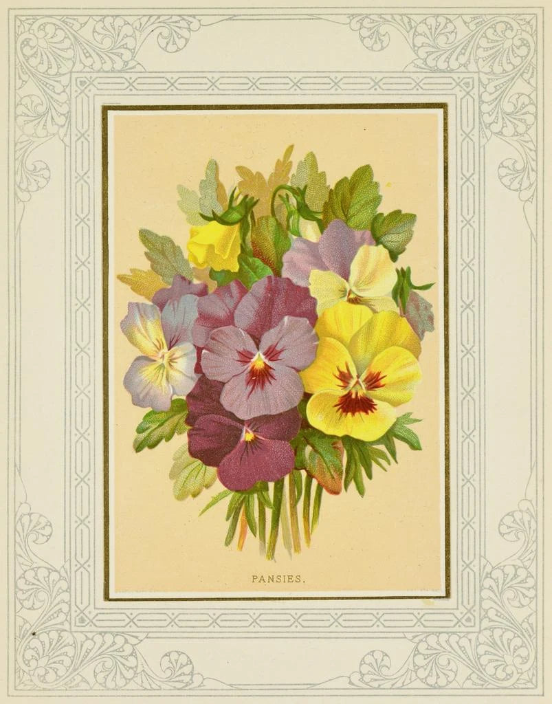 In diesem Lithografie mit dem Titel 'Gedanken' lädt uns Marcus Ward & Co. ein, die zarte Schönheit der Blumen in ihrer ganzen Pracht zu bewundern. Die florale Komposition, reich an Details, hebt die Farbnuancen und die Textur der Blütenblätter hervor und schafft ein Werk, das sowohl beruhigend als auch inspirierend ist. Dieses Stück, ein emblematisches Werk der floralen Kunst des 19. Jahrhunderts, findet eine besondere Resonanz in zeitgenössischen Innenräumen, wo es einen Hauch von Frische und Natur bringen kann. Wenn Sie dieses Werk in Ihren Raum integrieren, schaffen Sie eine warme und einladende Atmosphäre. Entdecken Sie diese Lithografie auf Artem Legrand, um die vergängliche Schönheit der Natur durch Kunst zu feiern.