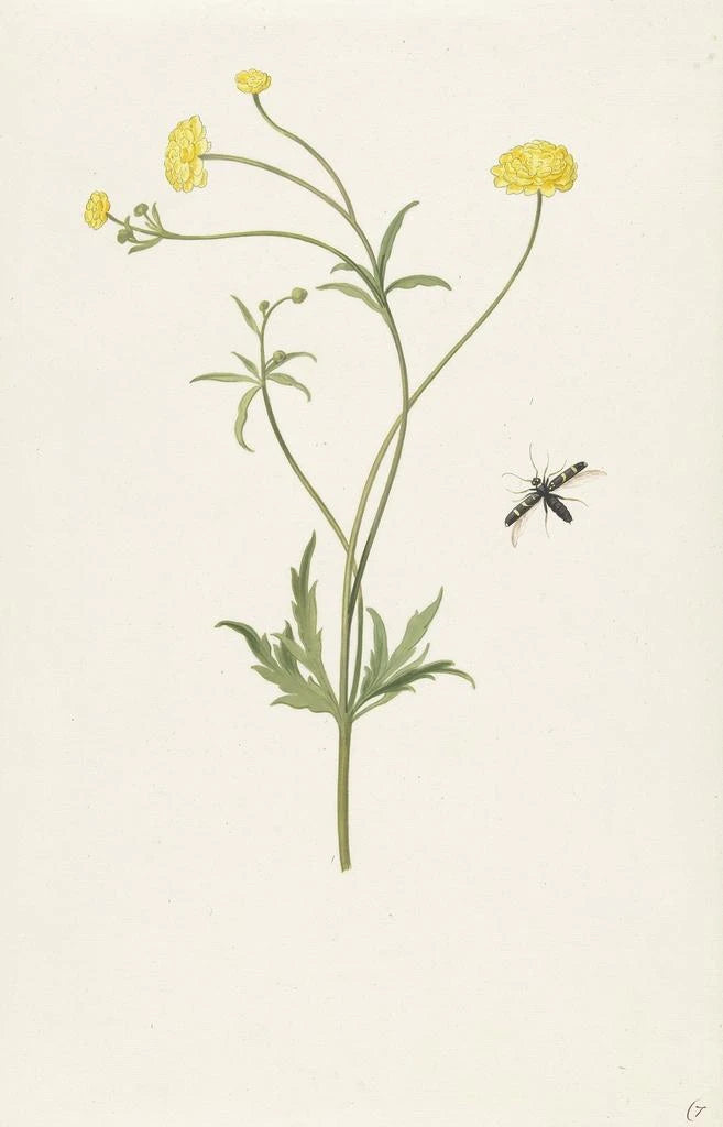 Gemälde Renoncule jaune double et insecte - Pieter Withoos | Kunstdruck
