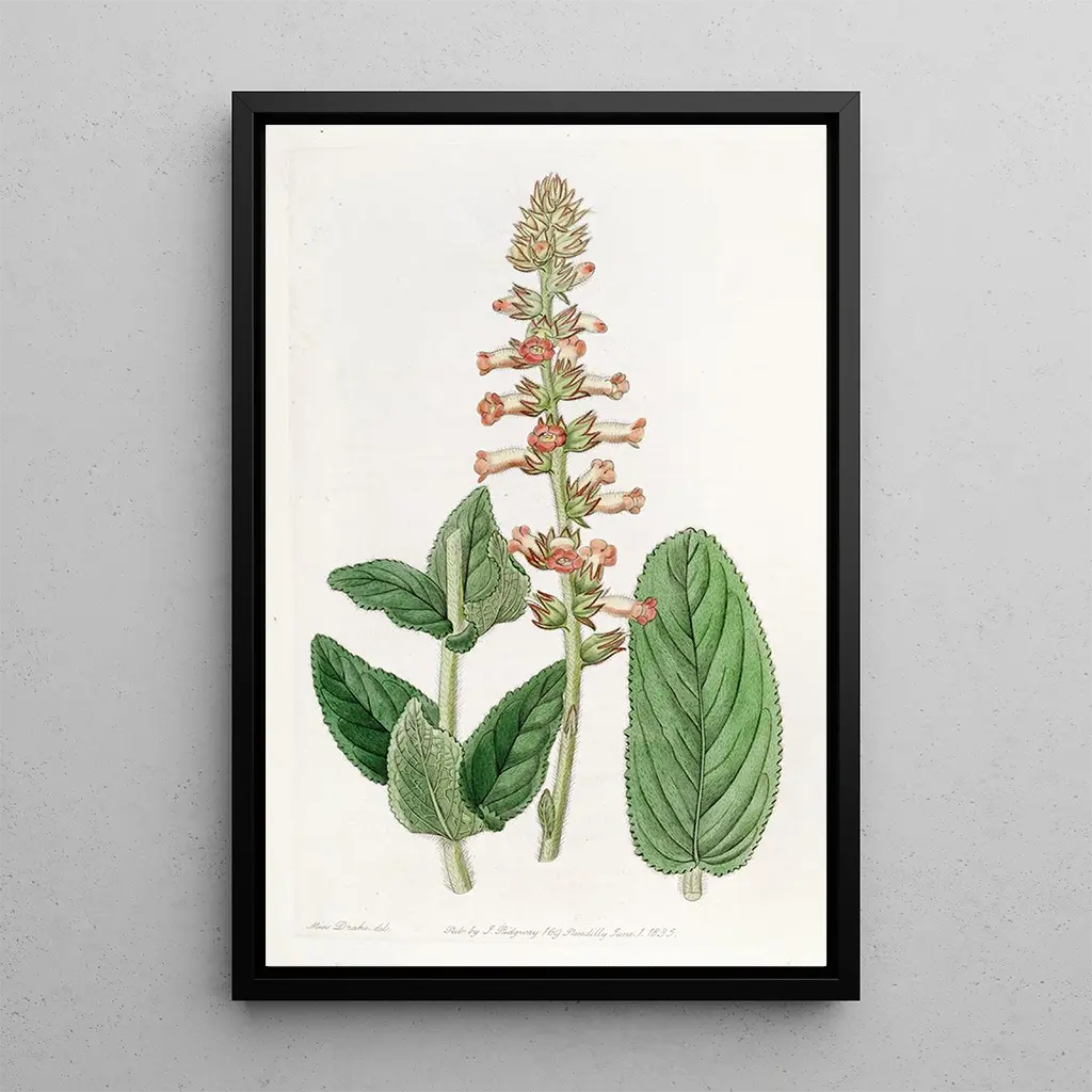 Die reproduction von Gesnera mit wechselnden Blättern, ein Werk von Sydenham Edwards, entführt uns in eine Welt voller faszinierender Farben und Texturen. Die Blätter in verschiedenen Farbtönen, von tiefem Grün bis hin zu leuchtendem Rot, schaffen einen beeindruckenden Kontrast, der sofort ins Auge fällt. Die Aquarelltechnik, meisterhaft angewandt, ermöglicht es, die Zartheit der Blütenblätter und die Komplexität der Muster wiederzugeben. Dieses Werk, sowohl wissenschaftlich als auch künstlerisch, feiert die Vielfalt der Flora und lädt zu einer aufmerksamen Betrachtung der Wunder der Natur ein.