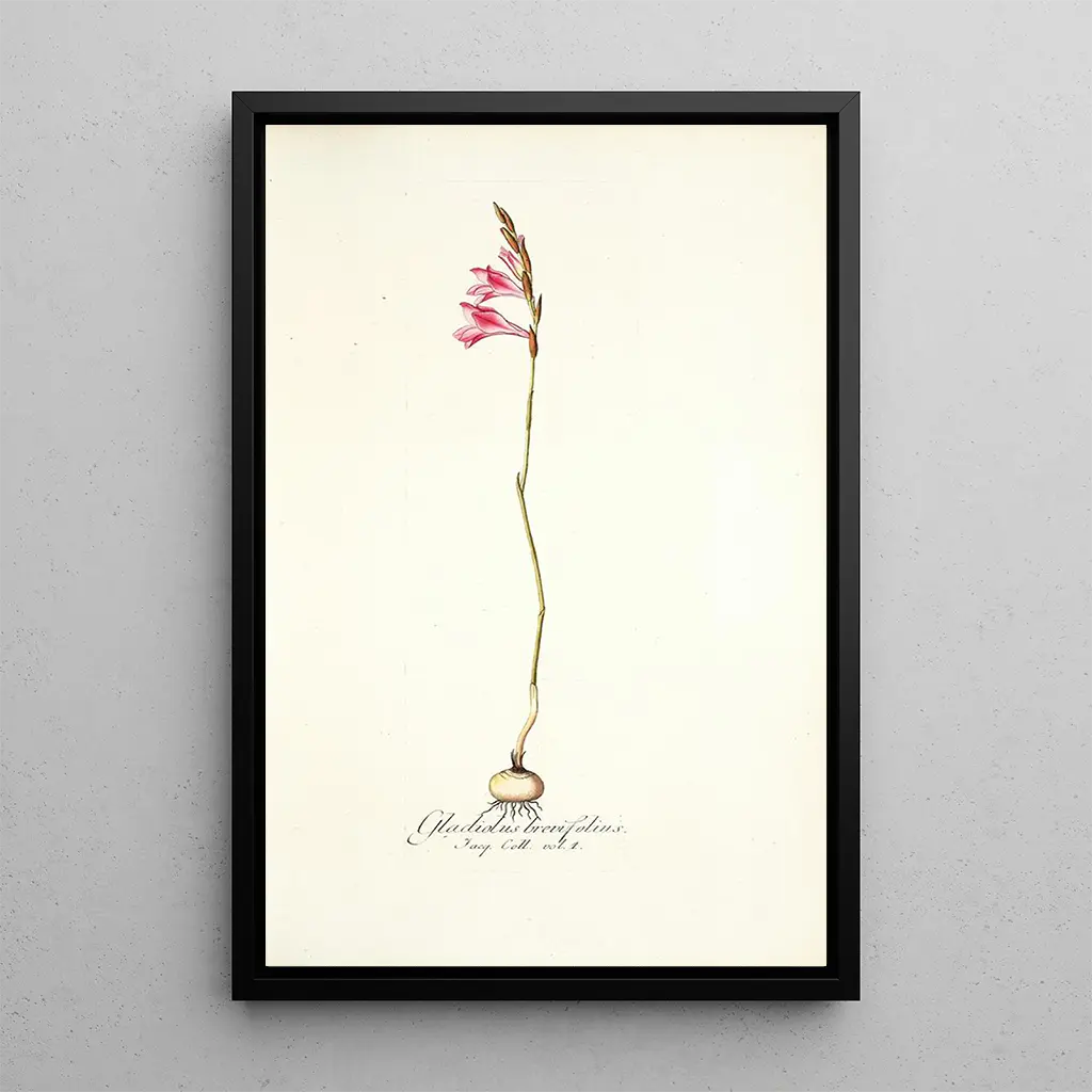 Gladiolus brevifolius : eine florale pracht zum entdecken Das Gemälde Gladiolus brevifolius, ein Werk von Nikolaus Joseph Freiherr von Jacquin, entführt uns in eine faszinierende botanische Welt. Diese zarte darstellung hebt die einzigartige schönheit der pflanze hervor, mit lebendigen farben, die von rosa bis grün reichen und die frische eines blühenden gartens widerspiegeln. Die aquarelltechnik des künstler ermöglicht es, die Leichtigkeit der blütenblätter und die feinsinnigkeit der details einzufangen, wodurch eine beruhigende und kontemplative atmosphäre entsteht. Jeder pinceau-strich scheint diesem blumen neues leben einzuhauchen und lädt uns ein, die natur aus einer neuen perspektive zu schätzen. Nikolaus Joseph Freiherr von Jacquin : ein pionier der künstlerischen botanik Nikolaus Joseph Freiherr von Jacquin, botaniker und künstler des 18. jahrhunderts, spielte eine entscheidende rolle bei der erforschung exotischer pflanzen. Ursprünglich aus Österreich, reiste er um die welt, sammelte exemplare und fertigte illustration an, die seine zeit prägten. Beeinflusst von der wissenschafts- und kunstbewegung, verstand es Jacquin, wissenschaftliche präzision und ästhetik in seinen werken zu vereinen. Seine arbeit trug zum verständnis der pflanzen bei und förderte die entwicklung der botanik in europa, was ihn zu einer ikonischen figur der blumenkunst machte. Gladiolus brevifolius ist eines seiner zahlreichen zeugnisse seines talents und seines engagement für die natur. Eine dekorative anschaffung mit vielfältigen vorteilen Die kunstdruck des gemäldes Gladiolus brevifolius ist ein ideales dekoratives stück, um verschiedene räume wie wohnzimmer, büro oder schlafzimmer zu verschönern. Seine hochwertige druckqualität und seine ästhetische anziehungskraft machen es zur perfekten wahl für alle, die ihrer einrichtung einen touch natur verleihen möchten. Durch die integration dieses bildes in Ihre dekoration schaffen Sie eine ruhige und inspirierende atmosphäre, während Sie die schönheit der blumen feiern. Dieses bild, eine wahre ode an die flora, wird kunstliebhaber und botanikkundige begeistern und gleichzeitig einen frischen akzent in Ihrer innenraumgestaltung setzen.