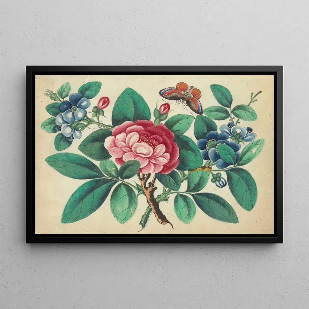 Die kunstdruck von "Grande Fleur Rouge, Fleurs Bleues, Papillon" ist ein Werk, das durch seine lebendige Farbpalette und seine harmonische Komposition beeindruckt. Die Blumen, leuchtend in Farben, scheinen fast unter dem Licht zu tanzen, während der Schmetterling, zart und anmutig, eine Note von Leichtigkeit in das Ganze bringt. Der anonyme Künstler hat die vergängliche Schönheit der Natur eingefangen und eine fröhliche und ruhige Atmosphäre geschaffen. Dieses Gemälde lädt zur Betrachtung ein und bietet einen Moment der Ruhe im Trubel des Alltags.