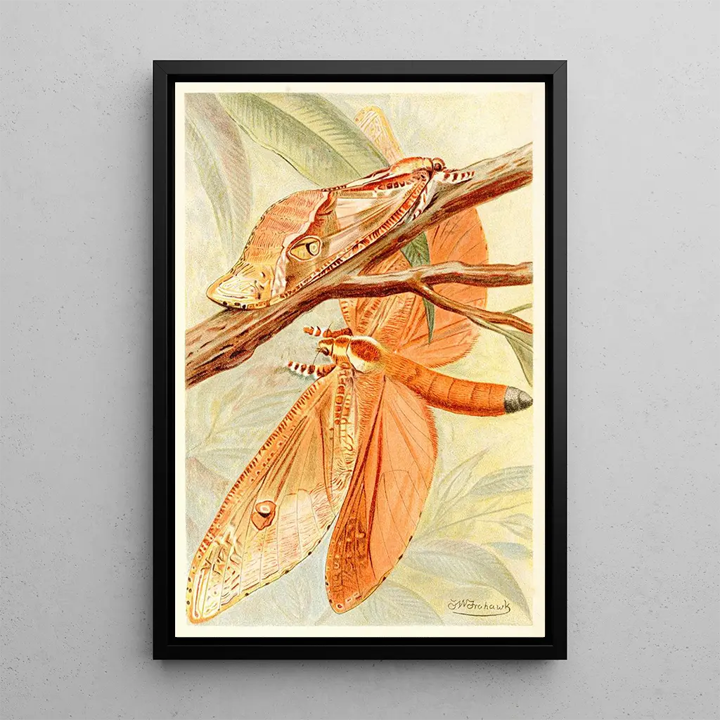 Das Bild "Grand Sphinx Mite" von Frederick William Frohawk ist eine Feier der Schönheit der Insekten und fängt mit Präzision die zarten Details dieses faszinierenden Insekts ein. Die Komposition hebt den Sphinx Mite in einer majestätischen Haltung hervor, umgeben von einer natürlichen Umgebung, die in lebendigen Farben erstrahlt. Die grünen und braunen Töne verschmelzen harmonisch und schaffen eine Atmosphäre, die sowohl ruhig als auch dynamisch ist. Die Technik von Frohawk, die Realismus und Sensibilität verbindet, ermöglicht es, die Textur der Flügel und die Feinheit der Muster zu schätzen und lädt den Betrachter ein, in die faszinierende Welt der Lepidoptera einzutauchen.