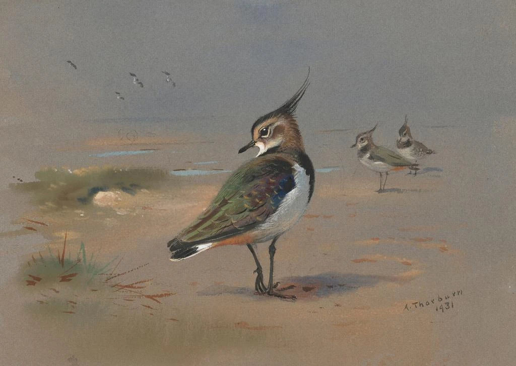 Die Grünen Kiebitze, mit ihrem leuchtenden Gefieder und ihren anmutigen Bewegungen, erinnern an eine lebendige und poetische Szene. Das Gemälde fängt den Moment ein, in dem sich diese Vögel versammeln, und schafft eine Harmonie zwischen Natur und Farbe. Die lebendigen Grüntöne und Blautöne vermischen sich mit Erdfarben, während der Himmel sich im ruhigen Wasser spiegelt. Die Technik des Künstlers, sowohl präzise als auch fließend, erweckt diese Komposition zum Leben und lädt den Betrachter ein, in diese natürliche Welt einzutauchen. Die Atmosphäre ist sowohl ruhig als auch dynamisch, ein echtes lebendiges Bild, das die Schönheit der wilden Landschaften widerspiegelt.