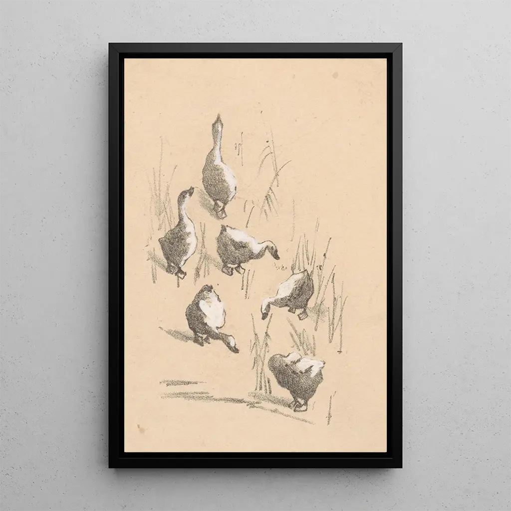 Grußkarten mit sechs Gänsen: eine Hommage an die Natur in Bewegung Die kunstdruck der Grußkarte mit sechs Gänsen von Theo van Hoytema fängt das Wesen der wilden Natur ein. Die Gänse, dargestellt in einem luftigen Tanz, scheinen anmutig auf einem Hintergrund in sanften, pastellfarbenen Tönen zu schweben. Die Technik des Künstlers, die Aquarell und Zeichnung verbindet, schafft eine leichte und poetische Atmosphäre, die den Betrachter einlädt, in eine natürliche Welt einzutauchen. Die detaillierten Federn und die Reflexionen im Wasser verleihen diesem Werk eine lebendige Dimension, die jeden Blick zu einer neuen Entdeckung macht. Theo van Hoytema: ein Meister der naturalistischen Illustration Theo van Hoytema, niederländischer Künstler, der gegen Ende des 19. und Anfang des 20. Jahrhunderts aktiv war, ist bekannt für seine zarten Illustrationen und Darstellungen der Fauna. Beeinflusst von der Art nouveau-Bewegung, verstand er es, Ästhetik und wissenschaftliche Präzision in seinen Werken zu vereinen. Seine Arbeit, die oft die Natur zum Thema hat, spiegelt eine tiefe Bewunderung für die Tier- und Pflanzenwelt wider. Van Hoytema arbeitete auch mit verschiedenen Magazinen und Publikationen zusammen, was zu seiner Bekanntheit und seinem Einfluss auf die Illustration seiner Zeit beitrug. Sein künstlerisches Erbe inspiriert weiterhin Naturfreunde und Kunstliebhaber. Eine dekorative Anschaffung mit vielfältigen Vorzügen Der kunstdruck der Grußkarte mit sechs Gänsen ist eine ideale Dekorationswahl, um Ihrem Zuhause eine Note der Ruhe zu verleihen. Ob im Wohnzimmer, Büro oder Schlafzimmer, dieses Werk fügt sich harmonisch in verschiedene Einrichtungsstile ein. Seine Druckqualität und die Treue zu den Originalfarben garantieren eine dauerhafte ästhetische Attraktivität. Mit dieser Leinwand entscheiden Sie sich für ein Stück, das die Schönheit der Natur widerspiegelt und gleichzeitig eine künstlerische Note in Ihren Lebensraum bringt.