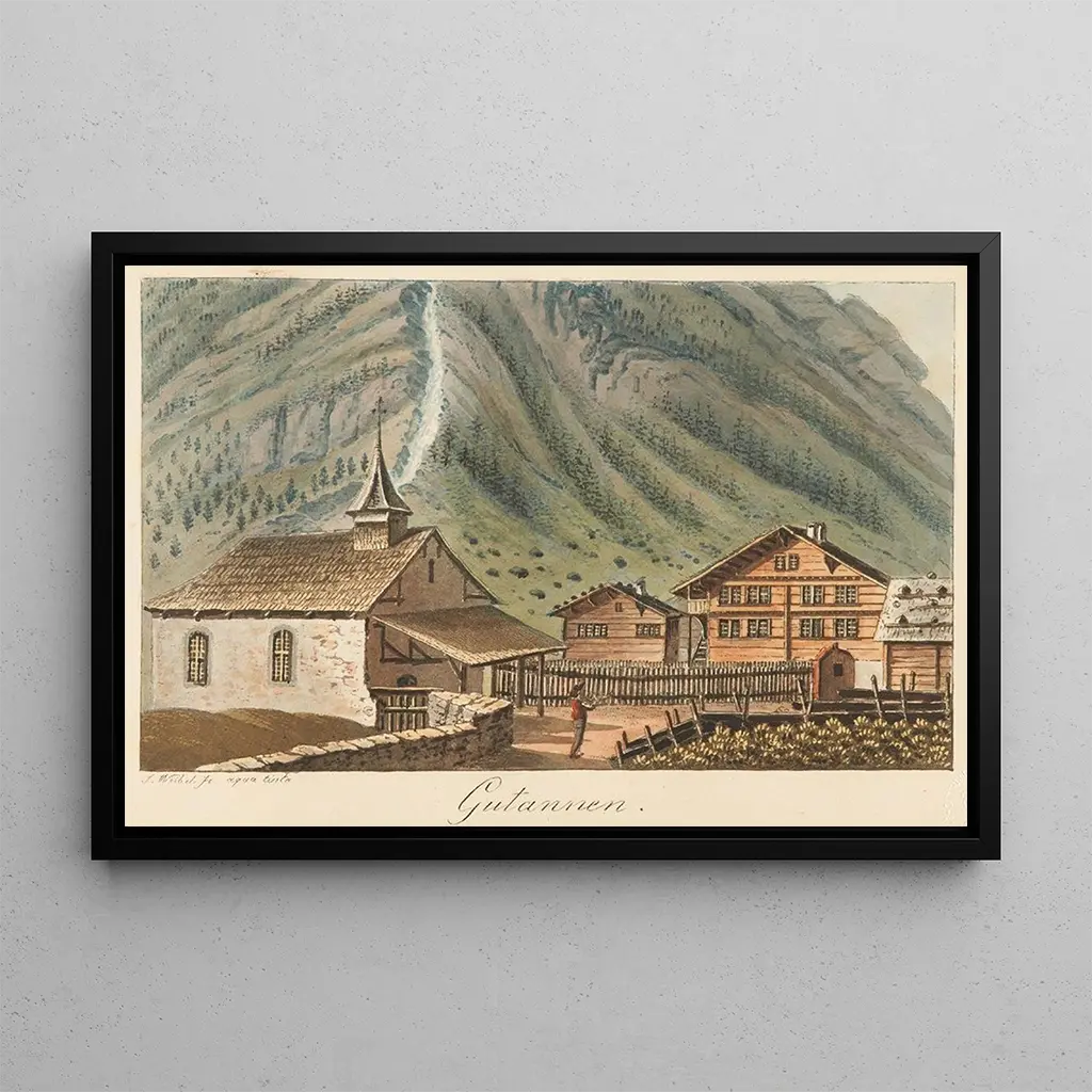 Gutannen : ein bezauberndes Landschaftsbild im Herzen der Alpen In diesem Werk entführt uns Jakob Samuel Weibel in eine atemberaubende Alpenlandschaft. Das Leinwandbild, durchflutet von Licht, zeigt majestätische Berge, grüne Täler und einen Himmel in strahlendem Blau. Die lebendigen Farben und die feinen Details zeugen von einer meisterhaften Technik, bei der jeder Pinselstrich die Essenz der Natur einzufangen scheint. Die ruhige Atmosphäre, die von dieser kunstdruck ausgeht, lädt zur Kontemplation ein und bietet eine Flucht vor dem Trubel des Alltags. Die Nuancen von Grün und Blau verschmelzen harmonisch und schaffen eine visuelle Symphonie, die das Auge verzaubert und den Geist beruhigt. Jakob Samuel Weibel : ein Meister der Schweizer landschaft Geboren in der Schweiz, ist Jakob Samuel Weibel bekannt für seine Landschaften, die die natürliche Schönheit seines Heimatlandes feiern. Aktiv im 19. Jahrhundert, gehört er zur romantischen Bewegung, bei der der Ausdruck von Emotionen durch die Natur im Vordergrund steht. Beeinflusst von den großen Meistern seiner Zeit, entwickelt Weibel einen einzigartigen Stil, der Präzision und Poesie verbindet. Seine Werke, oft inspiriert von Alpenlandschaften, zeugen von einer tiefen Verbindung zur Natur und dem Wunsch, die Ruhe, die sie vermittelt, zu übertragen. Sein künstlerisches Erbe inspiriert weiterhin Kunstliebhaber und Landschaftsfreunde. Eine dekorative anschaffung mit vielfältigen vorteilen Der kunstdruck von Gutannen ist ein dekoratives stück, das jeden Raum verschönern kann, sei es ein Wohnzimmer, ein Büro oder ein Schlafzimmer. Seine Druckqualität garantiert eine bemerkenswerte Treue zu den Details des Originalwerks, sodass jede Nuance und Textur geschätzt werden kann. Durch die Integration dieses Bildes in Ihre Dekoration verleihen Sie Ihrem Zuhause eine Note von Eleganz und Ruhe. Seine ästhetische Anziehungskraft und seine Fähigkeit, Emotionen hervorzurufen, machen ihn zur idealen Wahl für alle, die eine beruhigende und inspirierende Atmosphäre schaffen möchten.