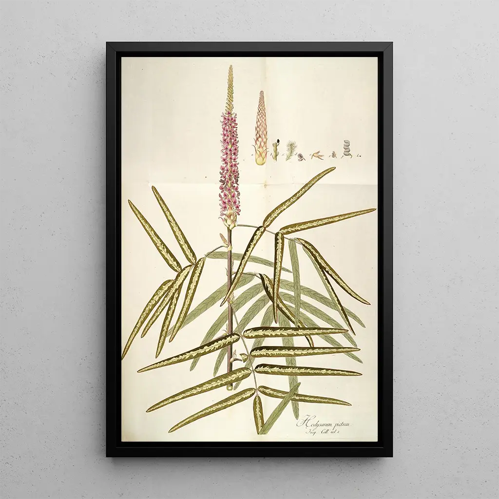 Hedysarum pictum : eine Ode an die florale Schönheit L'œuvre "Hedysarum pictum" von Nikolaus Joseph Freiherr von Jacquin ist eine faszinierende darstellung dieser Pflanze mit zarten Blüten. Die Komposition zeichnet sich durch ihre lebendigen und harmonischen Farben aus, bei denen Grüntöne mit Rosé- und Violettakzenten verschmelzen und eine sowohl beruhigende als auch belebende Atmosphäre schaffen. Die Technik des Künstlers, die botanische Präzision mit künstlerischer Sensibilität verbindet, ermöglicht es, die Textur der Blütenblätter und die Leichtigkeit der Blätter zu spüren. Jedes Detail ist sorgfältig wiedergegeben und lädt den Betrachter ein, in die natürliche Welt dieser Pflanze einzutauchen. Nikolaus Joseph Freiherr von Jacquin : ein Pionier der künstlerischen Botanik Nikolaus Joseph Freiherr von Jacquin, Botaniker und Künstler des 18. Jahrhunderts, spielte eine entscheidende Rolle bei der Erforschung exotischer Pflanzen. Ausgebildet in Wien und beeinflusst von den Entdeckungsreisen seiner Zeit, verstand er es, Wissenschaft und Kunst in seinen Werken zu vereinen. Seine botanischen Illustrationen, wie "Hedysarum pictum", zeugen von seinem Engagement, die Biodiversität zu dokumentieren, und bieten gleichzeitig eine ästhetische Sicht auf die Pflanzen. Jacquin war ein Vorreiter bei der Integration von Kunst in die Wissenschaft und trug zur Entstehung eines neuen Ansatzes in der Botanik während der Aufklärung bei. Eine dekorative Anschaffung mit vielfältigen Vorzügen Der Kunstdruck von "Hedysarum pictum" ist eine ideale Wahl, um Ihr Zuhause zu verschönern, sei es im Wohnzimmer, im Büro oder im Schlafzimmer. Seine Druckqualität und die Treue zu den Details des Originalwerks machen ihn zu einem fesselnden Bild, das den Blick auf sich zieht. Die ästhetische Anziehungskraft dieses Leinwandbildes liegt in seiner Fähigkeit, einen Hauch von Natur und Ruhe in Ihren Raum zu bringen. Mit der Wahl dieses Kunstdrucks entscheiden Sie sich für ein dekoratives Stück, das Kultur, Wissenschaft und Schönheit vereint und Ihre Umgebung auf elegante und raffinierte Weise bereichert.