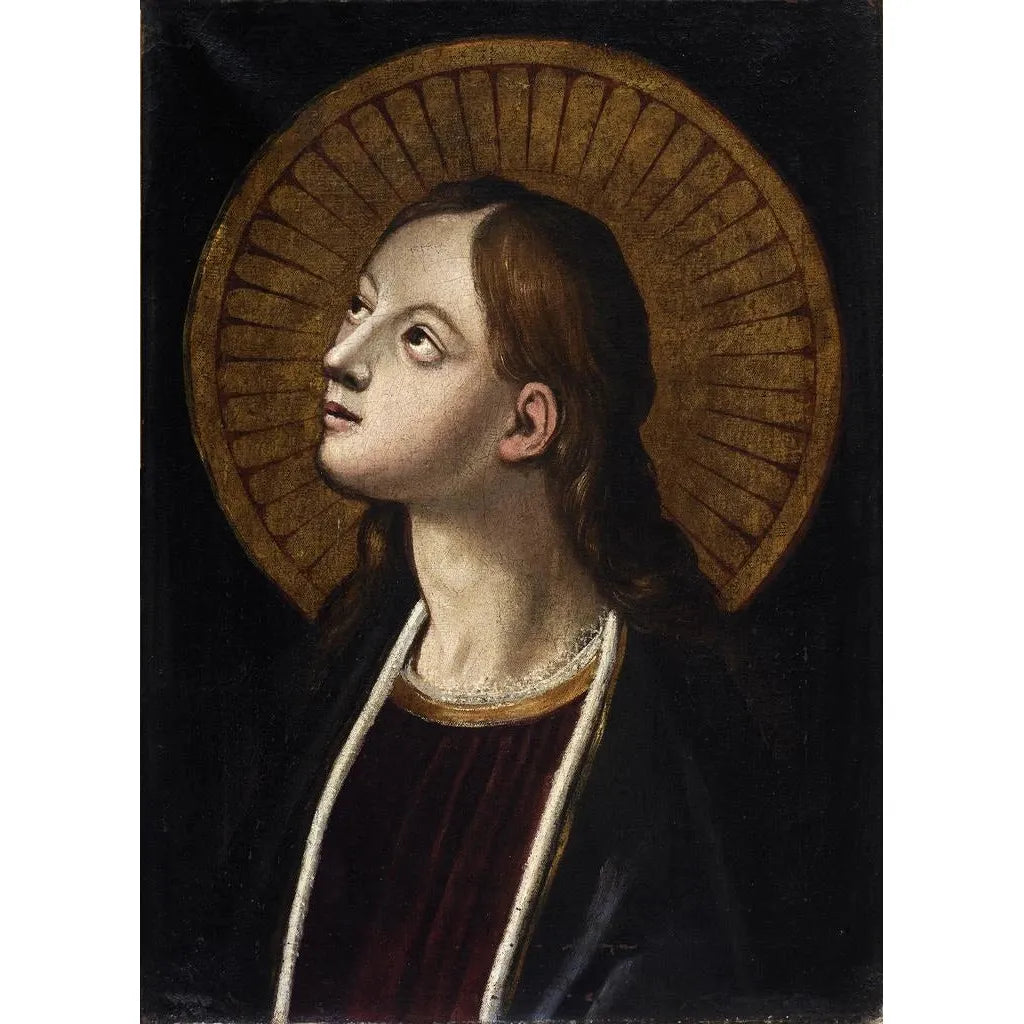 Der anonyme Künstler dieses Werks gehört einer Tradition an, die die Geschichte der religiösen Kunst geprägt hat, insbesondere im Mittelalter und in der Renaissance. Diese Künstler, oft ohne Namen, spielten eine wesentliche Rolle bei der Übermittlung heiliger Geschichten durch kraftvolle Bilder. Beeinflusst von den religiösen Überzeugungen ihrer Zeit, konnten sie die Essenz der Spiritualität in ihren Kreationen einfangen. Der kunstdruck von Saint zeugt von jener Epoche, in der Kunst ein Mittel der Kommunikation und Hingabe war, das die spirituellen Bestrebungen der Gesellschaft widerspiegelte.
