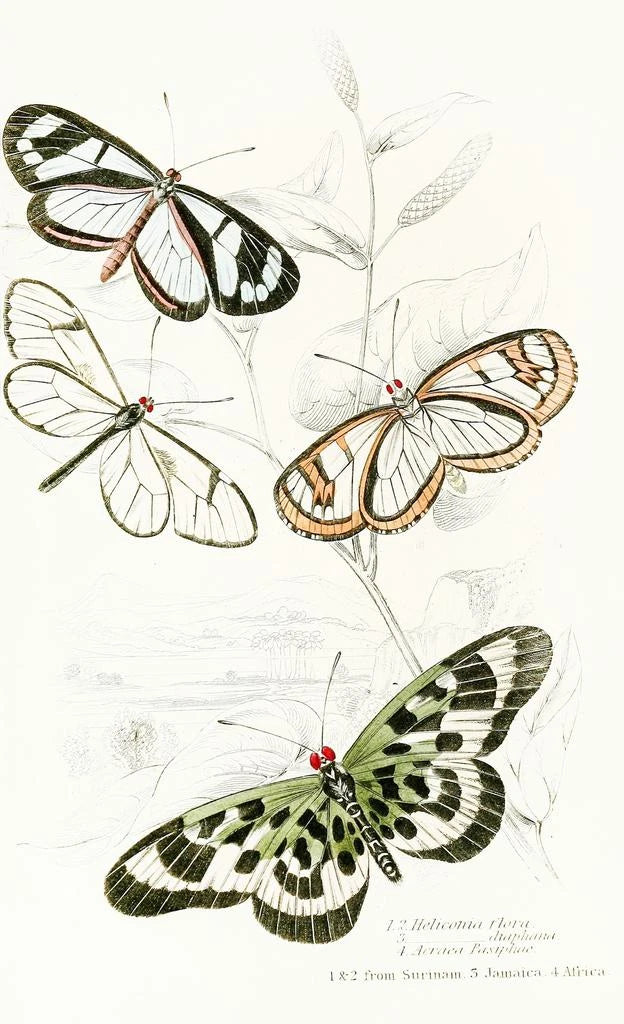 Gemälde Heliconia Flora Heliconia Diaphana Acraea Pasiphae - James Duncan