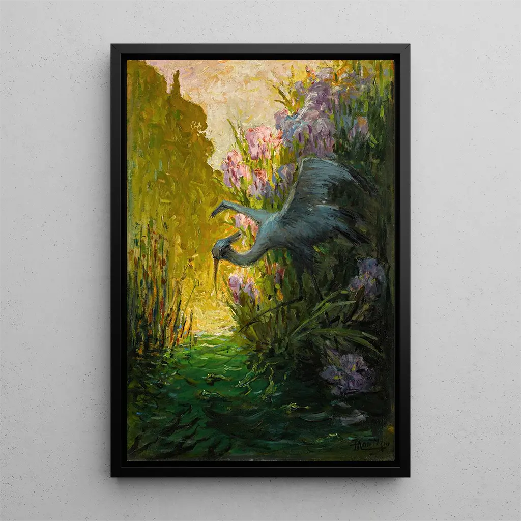 Héron : eine zeitlose aquatische Eleganz In dieser kunstdruckversion des Héron fängt Pierre-Eugène Montzin die Anmut und Gelassenheit dieses emblematischen Vogels ein. Die Nuancen von Blau und Grün verschmelzen harmonisch und erinnern an die Reflexionen eines ruhigen Teichs. Die mit Feinfühligkeit angewandte Aquarelltechnik verleiht dem Werk eine fast traumhafte Atmosphäre. Die detaillierten Feinheiten des Gefieders und die aufmerksame Haltung des im natürlichen Umfeld versenkten Herons laden zu einer beruhigenden Betrachtung ein, als ob die Zeit stillgestanden hätte, um die Schönheit der wilden Tierwelt zu bewundern. Pierre-Eugène Montzin : ein Meister der Natur im 19. Jahrhundert Pierre-Eugène Montzin, französischer Maler des 19. Jahrhunderts, ist bekannt für seine Werke, die die Natur feiern. Beeinflusst von der romantischen Bewegung, spezialisierte er sich auf die Darstellung von Landschaften und Tieren und suchte, das Wesen des wilden Lebens einzufangen. Montzin verstand es, Realismus und Poesie zu verbinden und Gemälde zu schaffen, die noch heute nachklingen. Seine Arbeiten spiegeln eine Epoche wider, in der sich die Kunst der Natur zuwendet, als Ausdruck eines Strebens nach Authentizität und Harmonie mit der Umwelt. Seine Werke, obwohl weniger bekannt als die einiger Zeitgenossen, zeugen von einer einzigartigen Sensibilität für die Schönheit der natürlichen Welt. Eine dekorative Anschaffung mit vielfältigen Vorzügen Dieser kunstdruck des Héron ist ein ideales Dekorationsstück für verschiedene Wohnräume, sei es ein Wohnzimmer, ein Büro oder ein Schlafzimmer. Seine beruhigende Farbpalette und die feinen Details bringen eine Note von Gelassenheit und Eleganz in Ihr Zuhause. Die Qualität des kunstdrucks garantiert eine Treue zu den Farben und Texturen des Originalwerks, sodass Sie die Ästhetik von Montzin voll auskosten können. Mit der Wahl dieses Leinwandbildes entscheiden Sie sich für ein Bild, das nicht nur Ihren Raum verschönert, sondern auch eine tiefe Verbindung zur Natur evoziert.