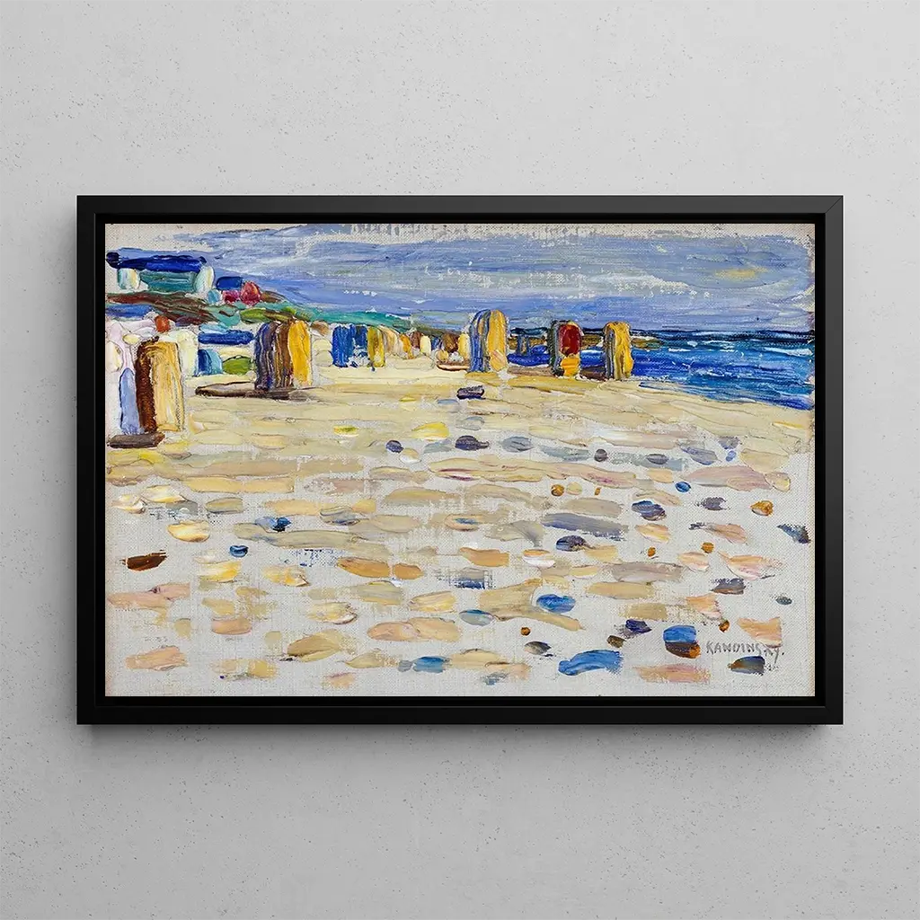 In diesem lebendigen Werk entführt uns Wassily Kandinsky an die Strände Hollands, wo die berühmten strandkörbe wie bunte Skulpturen emporragen. Die geometrischen Formen verschlingen sich in einem dynamischen Tanz, während die leuchtenden Farben Freude und Leichtigkeit des Sommers hervorrufen. Die Öl-auf-Leinwand-Technik ermöglicht es Kandinsky, Tiefe und Textur zu erforschen und eine Atmosphäre zu schaffen, die sowohl beruhigend als auch stimulierend wirkt. Jeder Pinselstrich scheint die Bewegung des Windes und das Murmeln der Wellen einzufangen und lädt den Betrachter ein, in diese sommerliche Szene einzutauchen.