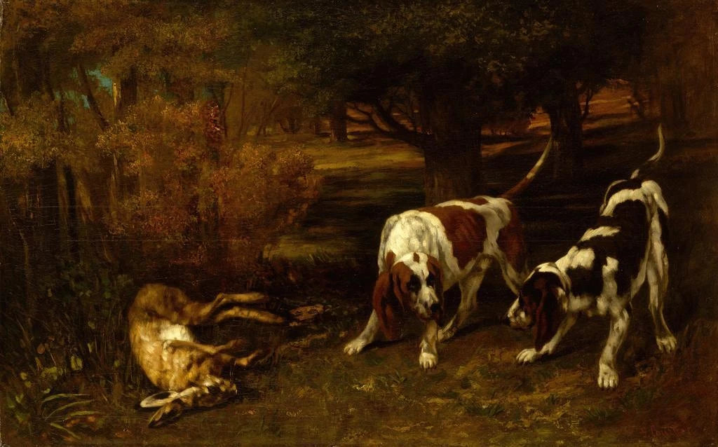 Kunstdruck | Jagdhunde mit totem Hasen - Gustave Courbet