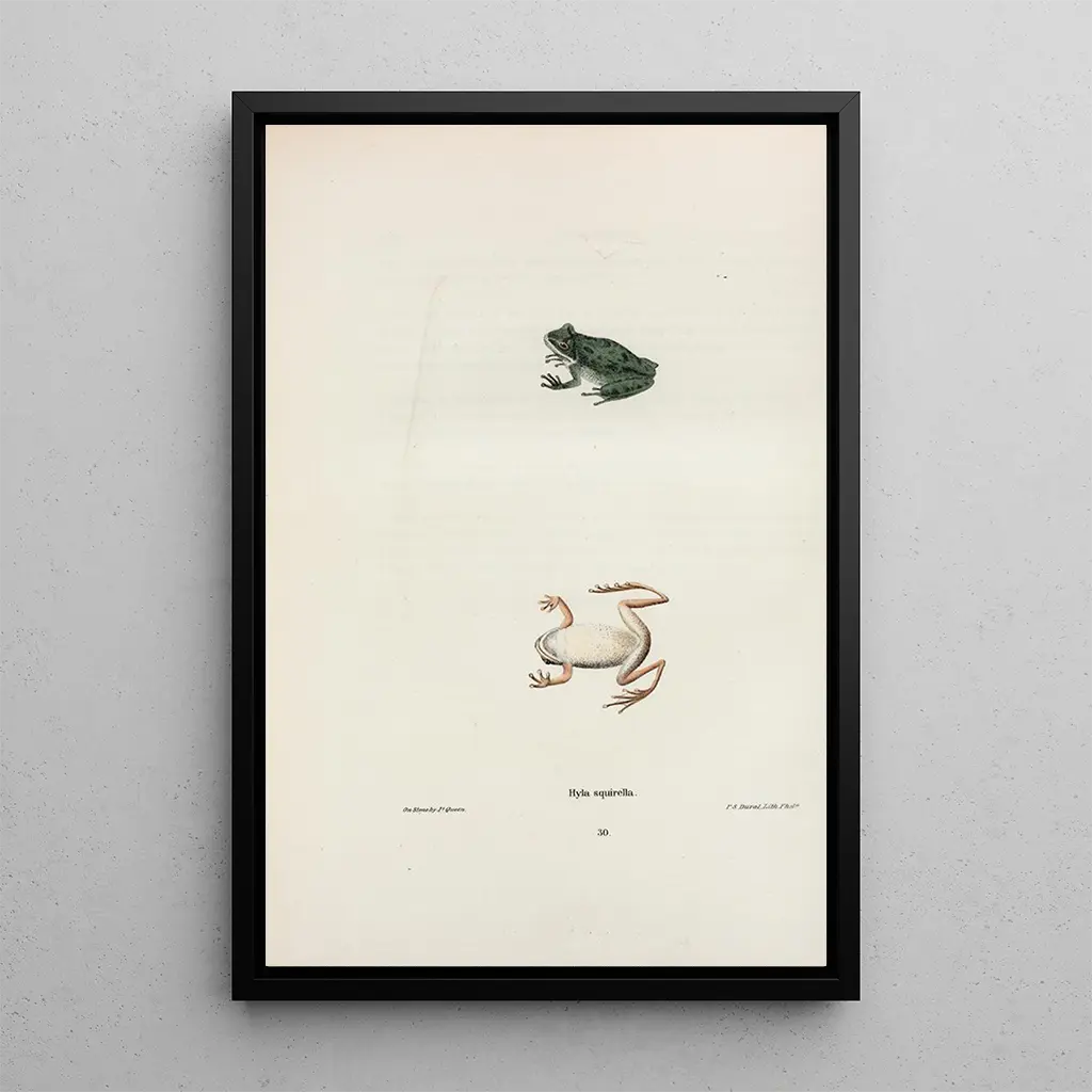 Hyla écureuil : eine Hommage an die Biodiversität Die reproduction Hyla écureuil zeigt einen baumbewohnenden Frosch mit atemberaubender Schönheit, mit lebendigen Farbtönen und einem ausdrucksstarken Blick. Die Nuancen von Grün, Blau und Weiß verbinden sich zu einem lebendigen Gemälde, das die Vielfalt der Natur widerspiegelt. Die vom Künstler beherrschte Aquarelltechnik ermöglicht es, die Leichtigkeit und Zartheit dieses Amphibiums einzufangen. Das Werk strahlt eine ruhige Atmosphäre aus und lädt den Betrachter ein, die Einfachheit und Schönheit des wilden Lebens zu schätzen. John Edwards Holbrook: ein Künstler im Dienste der Wissenschaft John Edwards Holbrook, Naturforscher und Illustrator des 19. Jahrhunderts, prägte seine Zeit mit präzisen und poetischen Illustrationen der Tierarten. Seine Arbeit steht im Kontext, in dem Wissenschaft und Kunst sich verbinden, um die Biodiversität besser zu verstehen. Holbrook wurde durch die wissenschaftlichen Expeditionen seiner Zeit beeinflusst, und seine Werke trugen zur Dokumentation der amerikanischen Arten bei. Sein künstlerischer Ansatz sensibilisierte die Öffentlichkeit für die Schönheit und Zerbrechlichkeit der Natur und machte ihn zu einer ikonischen Figur der zoologischen Illustration. Eine dekorative Anschaffung mit vielfältigen Vorteilen Die reproduction Hyla écureuil ist eine perfekte dekorative Wahl, um einen Hauch von Natur in Ihr Zuhause zu bringen. Ob im Wohnzimmer, im Büro oder im Schlafzimmer, dieses Leinwandbild besticht durch seine Druckqualität und seine Treue zu den Originalfarben. Durch das Hinzufügen dieses Bildes zu Ihrer Dekoration schaffen Sie einen einladenden und inspirierenden Raum und feiern gleichzeitig die Schönheit der Tierwelt. Dieses Werk wird die Aufmerksamkeit auf sich ziehen und Bewunderung hervorrufen, wodurch Ihre tägliche Umgebung bereichert wird.