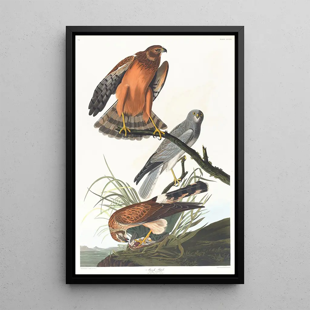 John James Audubon, geboren in Haiti im Jahr 1785, ist eine ikonische Figur der ornithologischen Kunst. Seine Leidenschaft für Vögel und die Natur führte ihn durch die Vereinigten Staaten, wo er ausführliche Studien zur avifaunistischen Fauna anfertigte. Sein innovativer Ansatz, Kunst und Wissenschaft zu verbinden, ermöglichte die Dokumentation oft unbekannter Arten. Der Busard des marais ist eines seiner zahlreichen Werke, die sein Engagement für den Naturschutz und die Wertschätzung der Natur bezeugen. Audubon hinterließ ein nachhaltiges Erbe, das Generationen von Künstlern und Naturforschern inspiriert.