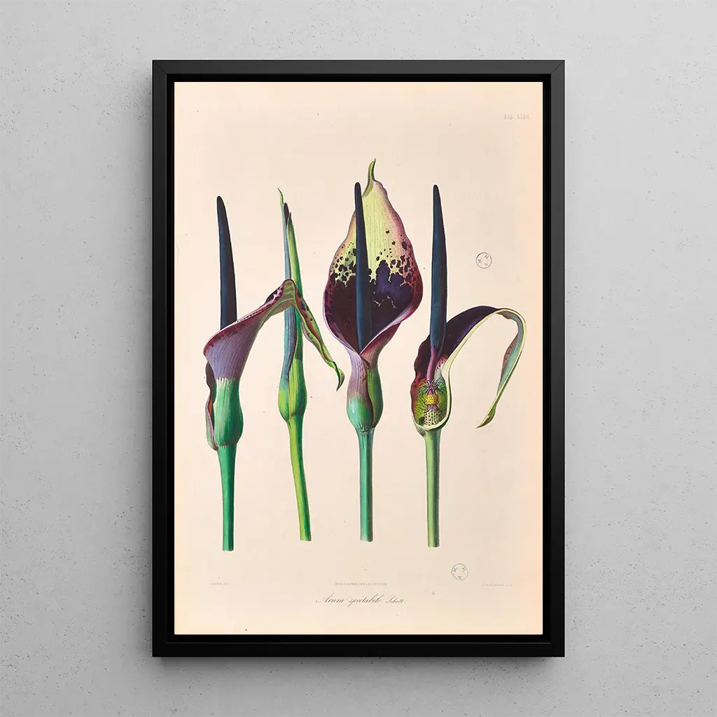 „Icones Aroidearum Pl32“ von Heinrich Wilhelm Schott ist ein faszinierendes Werk, das die Vielfalt der Araceae durch eine detailreiche Illustration hervorhebt. Jedes Element dieser kunstdruck wird sorgfältig wiedergegeben, von den Texturen der Blätter bis zu den zarten Nuancen der Blüten. Die lebendigen Farben, die von tiefem Grün bis zu leuchtenden Tönen reichen, schaffen eine lebendige und dynamische Atmosphäre. Dieses Gemälde lädt dazu ein, eine faszinierende botanische Welt zu erkunden, in der jede Pflanze eine einzigartige Geschichte erzählt und die Schönheit der Natur auf eine neue Weise offenbart.
