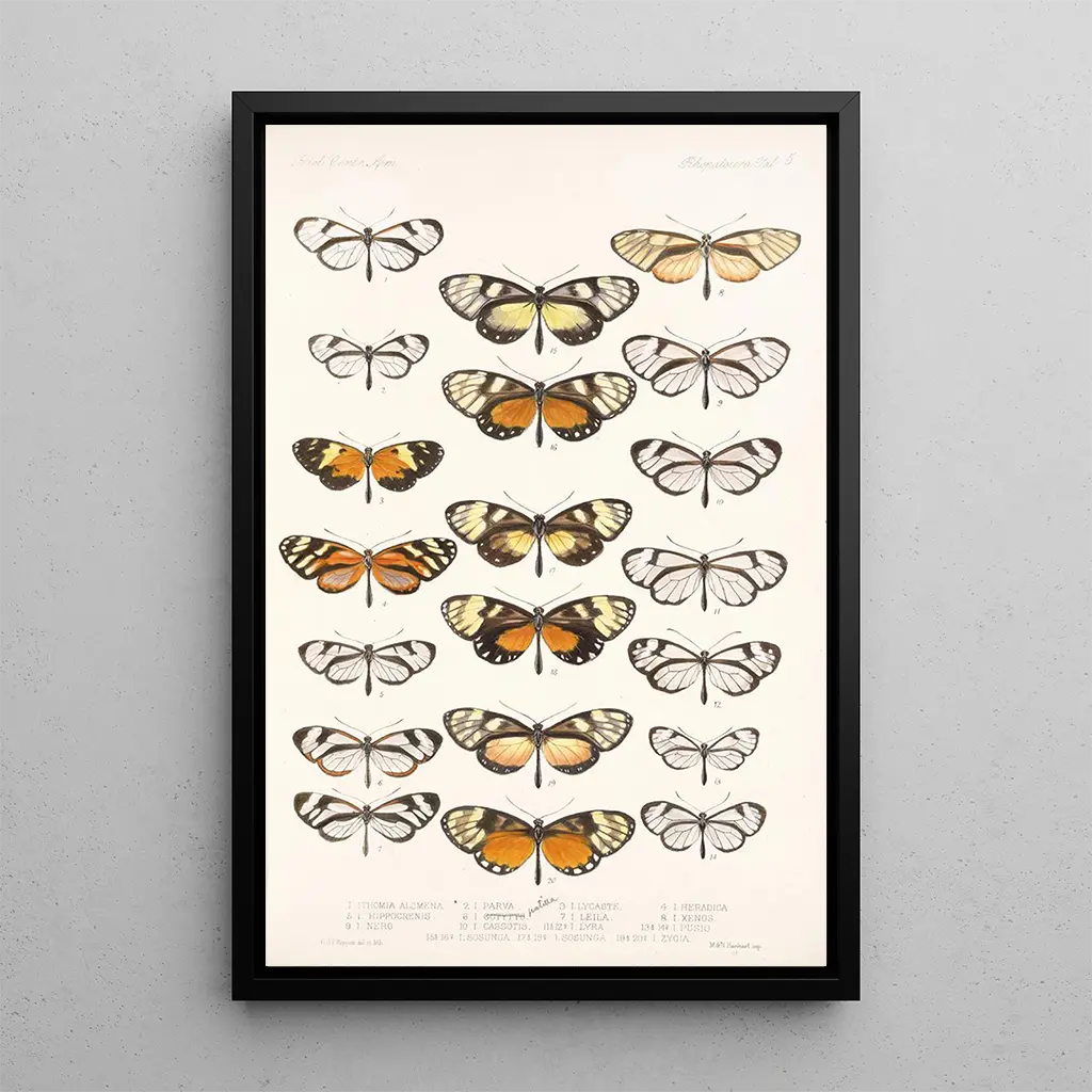 Insektum Lepidoptera Rhopalocera Pl 005 : eine Hommage an die Vielfalt der Schmetterlinge Das Werk "Insektum Lepidoptera Rhopalocera Pl 005" von Frederick DuCane Godman ist eine visuelle Feier der faszinierenden Vielfalt der Schmetterlinge. Dieser kunstdruck zeichnet sich durch seine leuchtenden Farben und seine harmonische Komposition aus, die die natürliche Schönheit dieser Insekten hervorheben. Jedes Detail ist sorgfältig wiedergegeben, von den komplexen Mustern der Flügel bis zu den subtilen Farbnuancen. Die Atmosphäre, die von diesem Werk ausgeht, ist sowohl wissenschaftlich als auch künstlerisch und lädt dazu ein, die Welt der Lepidoptera mit Staunen und Neugier zu erkunden. Frederick DuCane Godman: ein Künstler an der Schnittstelle von Kunst und Wissenschaft Frederick DuCane Godman, aktiv im 19. Jahrhundert, ist bekannt für sein Engagement in der Insektenforschung und seinen Beitrag zur wissenschaftlichen Illustration. Als Entomologe arbeitete er mit anderen Forschern zusammen, um Werke zu schaffen, die das Wissen über Schmetterlinge voranbrachten. Sein künstlerischer Ansatz, beeinflusst von den viktorianischen Trends, ermöglichte es, Ästhetik und wissenschaftliche Strenge zu verbinden. Godman hinterließ so ein nachhaltiges Erbe und machte seine Werke zu Referenzen sowohl für Kunstliebhaber als auch für Naturbegeisterte. Eine dekorative Anschaffung mit vielfältigen Vorzügen Der kunstdruck von "Insektum Lepidoptera Rhopalocera Pl 005" ist eine ideale Wahl, um Ihre Inneneinrichtung zu bereichern. Ob in einem Arbeitsbereich, Wohnzimmer oder Schlafzimmer – diese Leinwand verleiht einen Hauch von Raffinesse und Originalität. Die Druckqualität garantiert eine außergewöhnliche Treue zu den Originalwerken und bietet gleichzeitig eine fesselnde visuelle Anziehungskraft. Durch die Integration dieses Werks in Ihre Umgebung schaffen Sie einen Raum, der zum Nachdenken und zur Diskussion anregt und gleichzeitig die Schönheit der Natur würdigt.