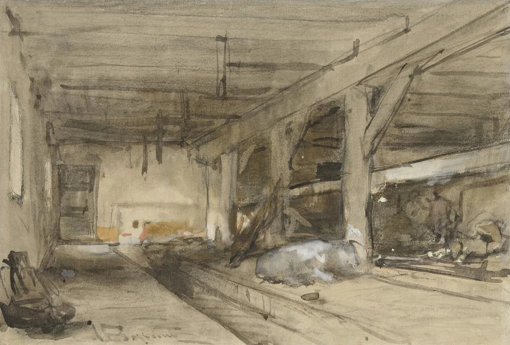 Innenansicht einer Stallung - Johannes Bosboom
